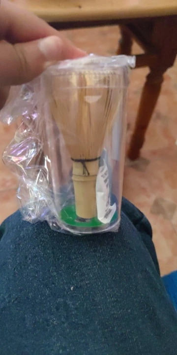 <<Po namoczeniu gorącą wodą przed pierwszym użyciem zielona herbata matcha mieszadło, włókna bambusowe mogą się rozproszyć.