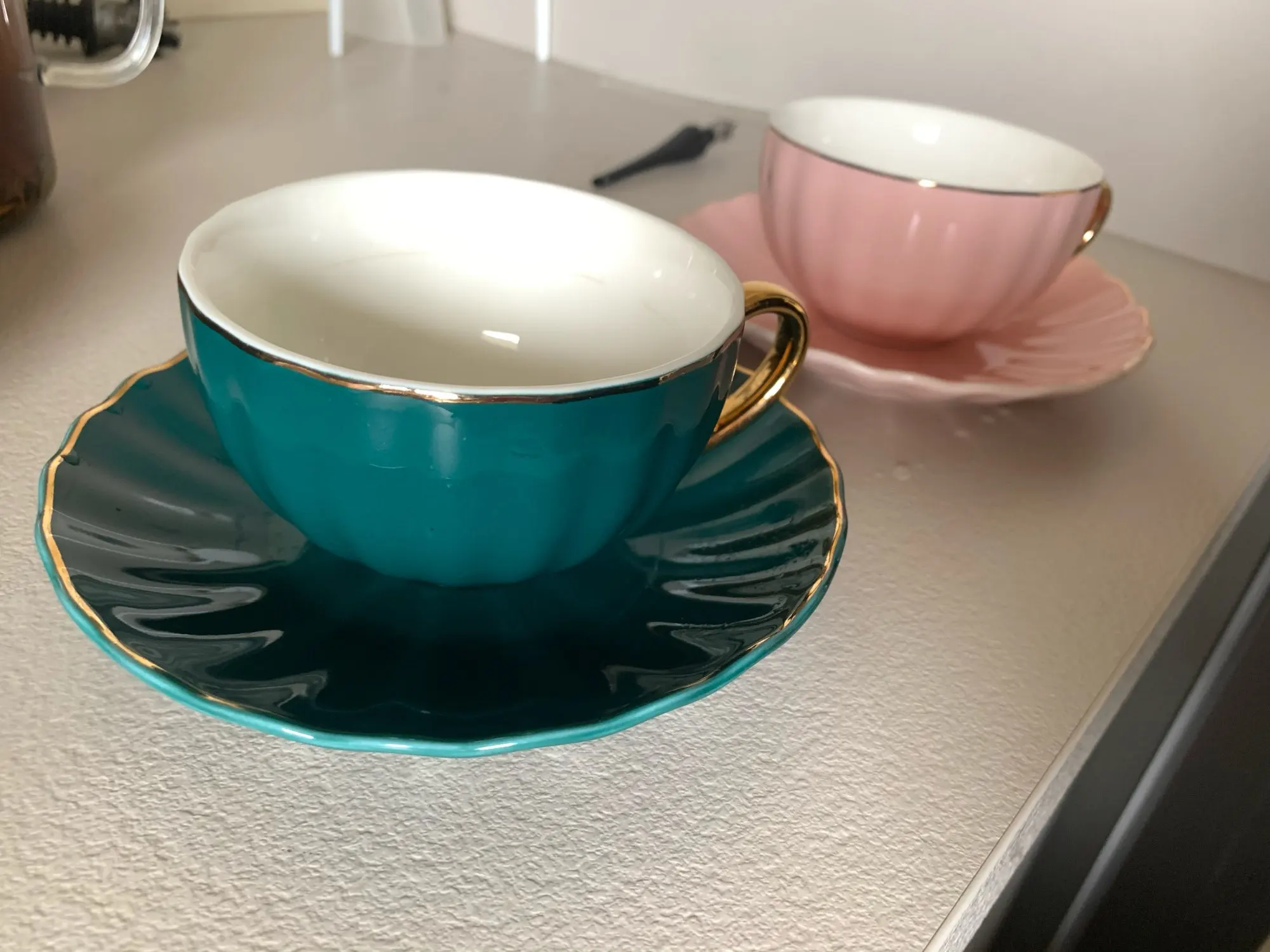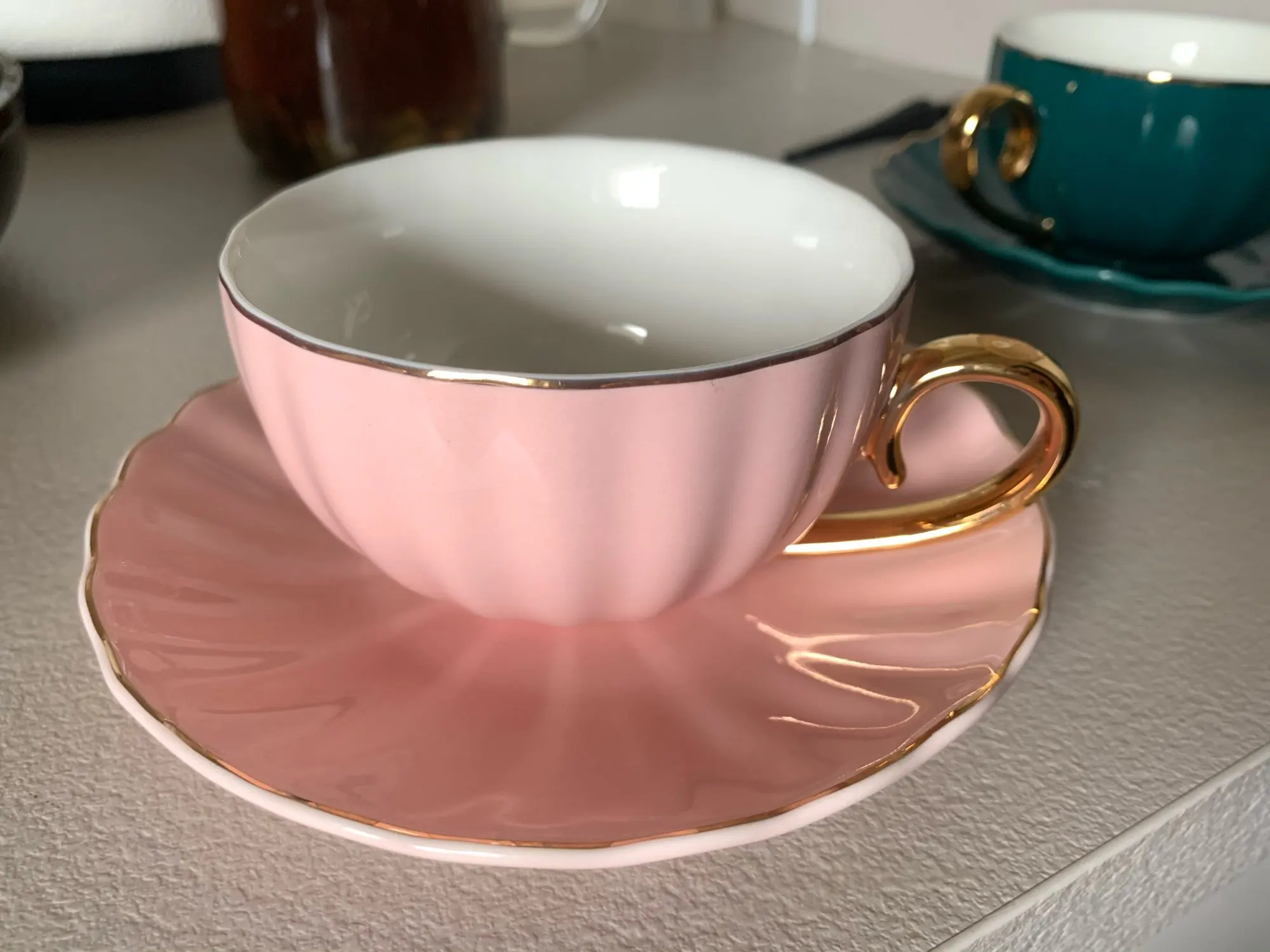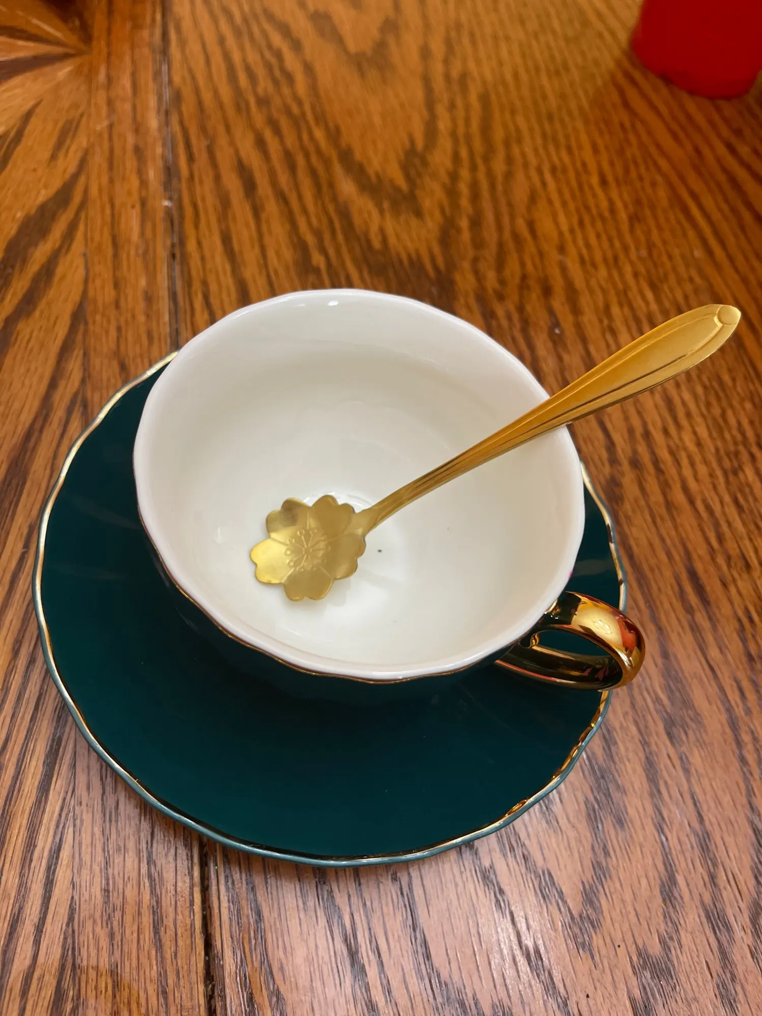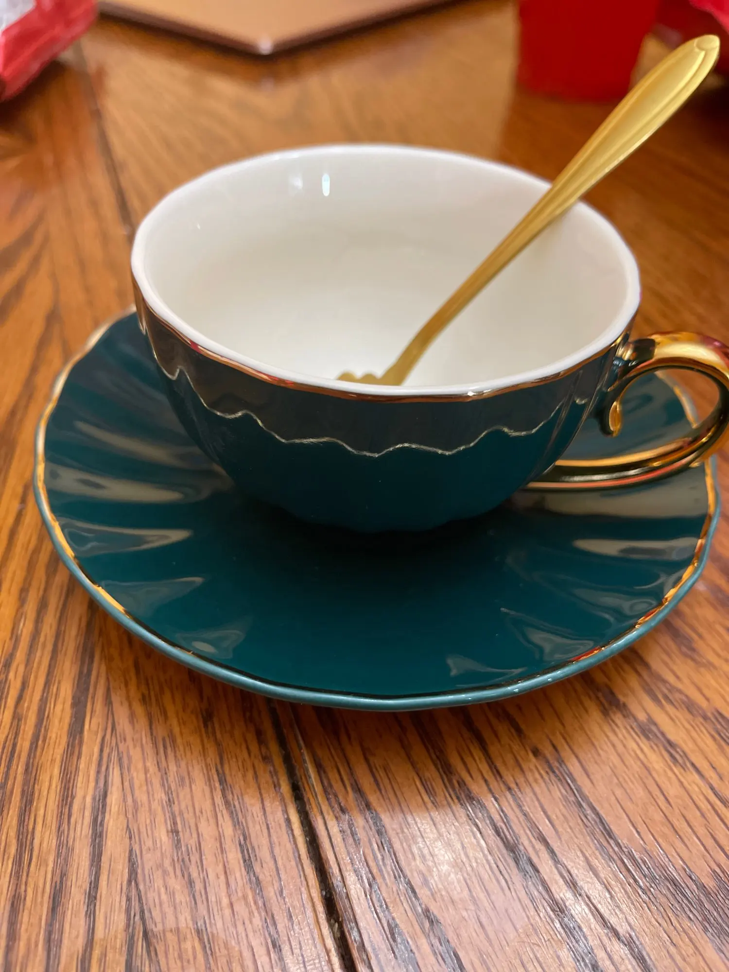 Beautiful cups and saucers. Unfortunately mine didn't came with any teaspoon! Bought the teapot to match the cups.