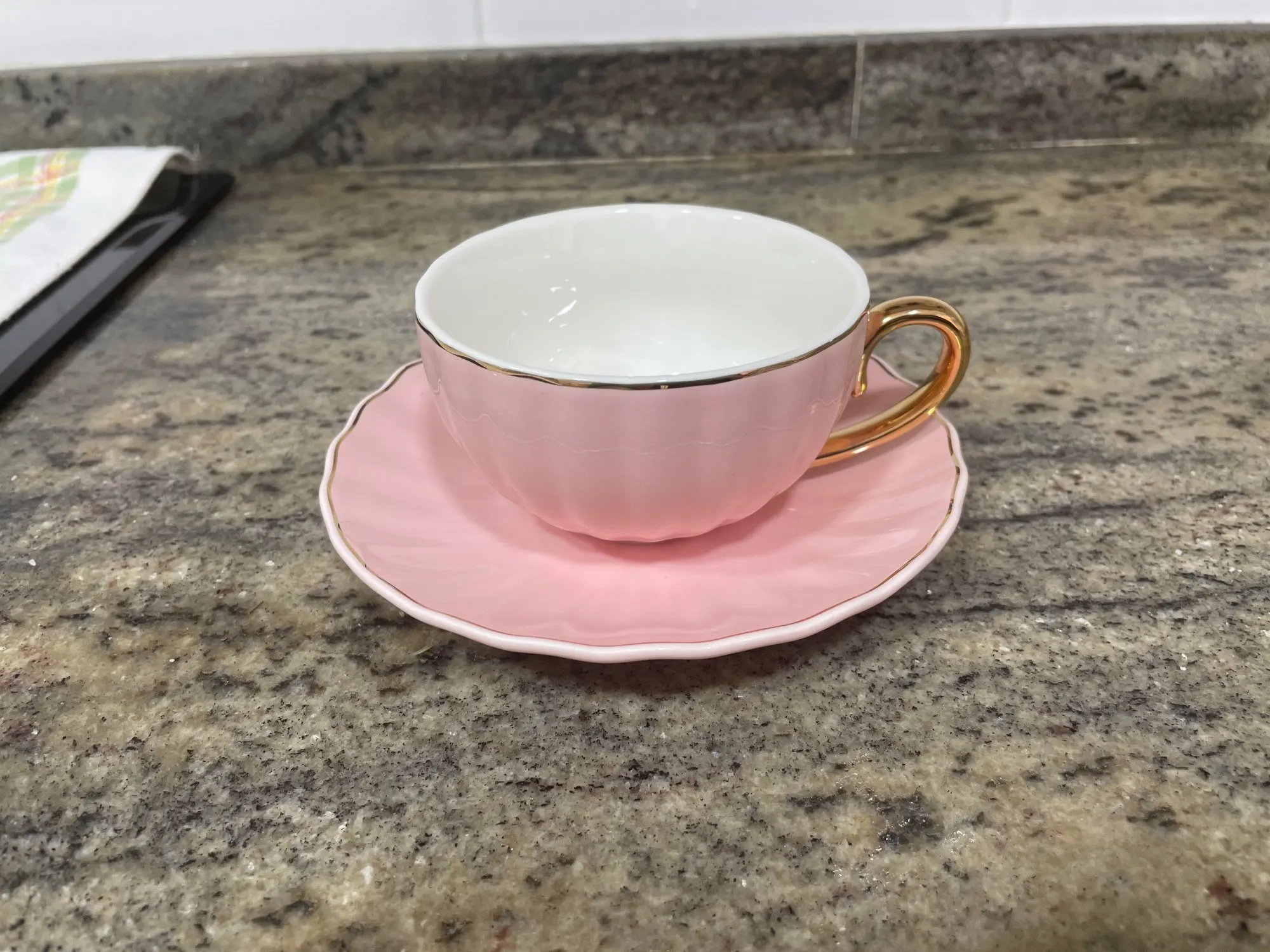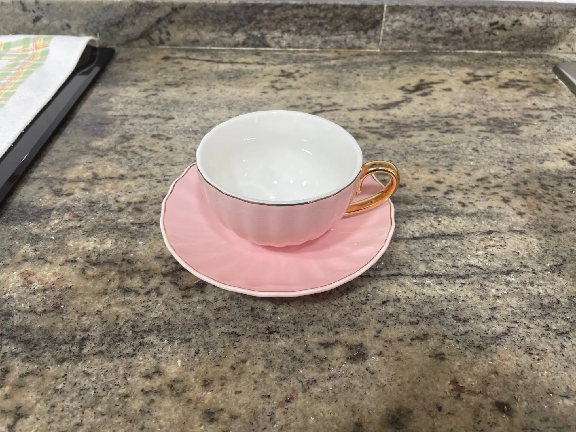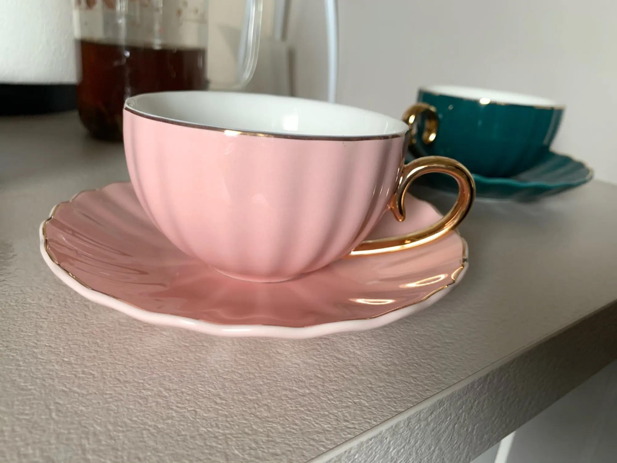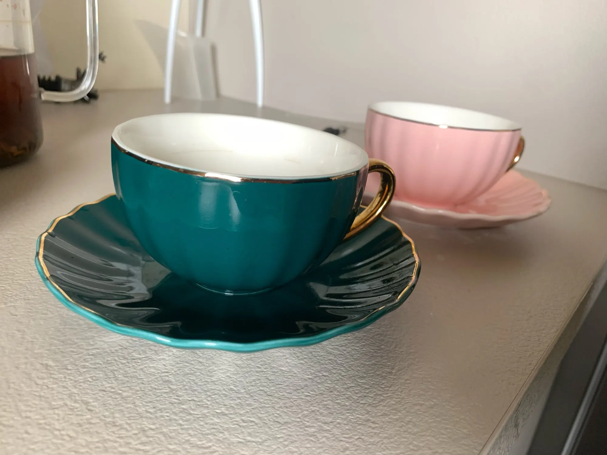 Beautiful cups and saucers. Unfortunately mine didn't came with any teaspoon! Bought the teapot to match the cups.