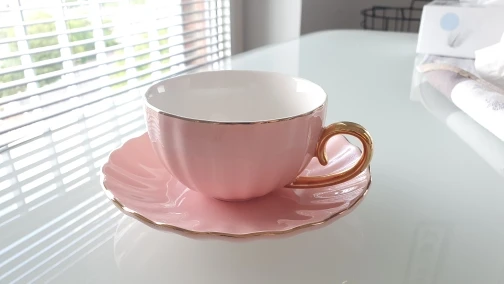 Różowa śliczna kreatywna porcelana filiżanka i spodek ceramika proste zestawy do herbaty nowoczesny Design filiżanki do kawy Taz
