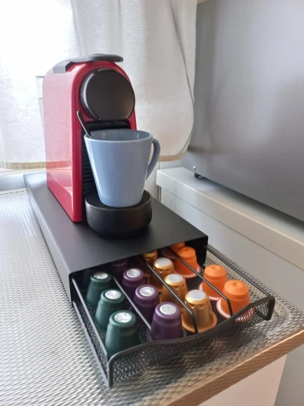 Aunque las cápsulas se mueven dentro de las guías porque no ajustan, y cuando abres y cierras se acaban amontonando un poquito, cumple perfectamente su función. ¡Muy contenta con la compra!