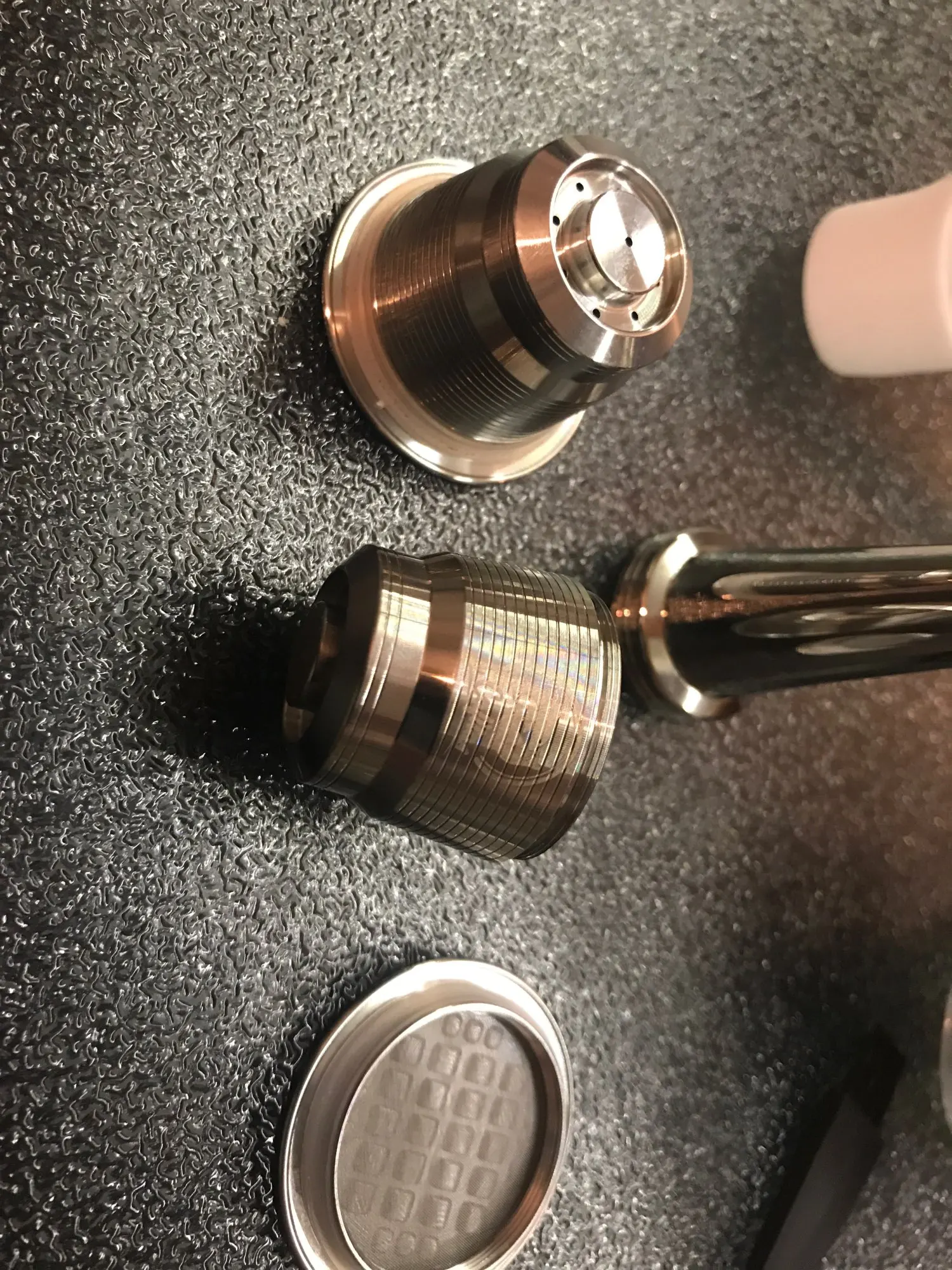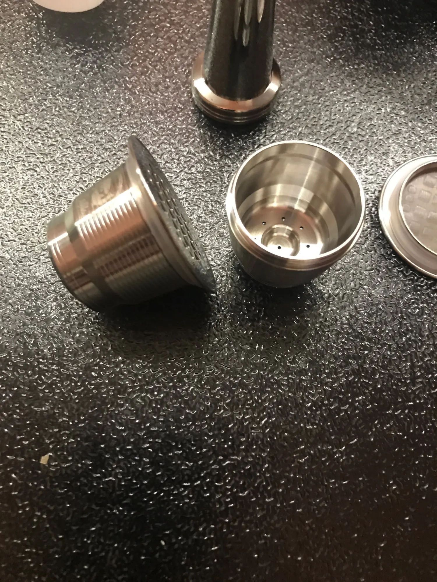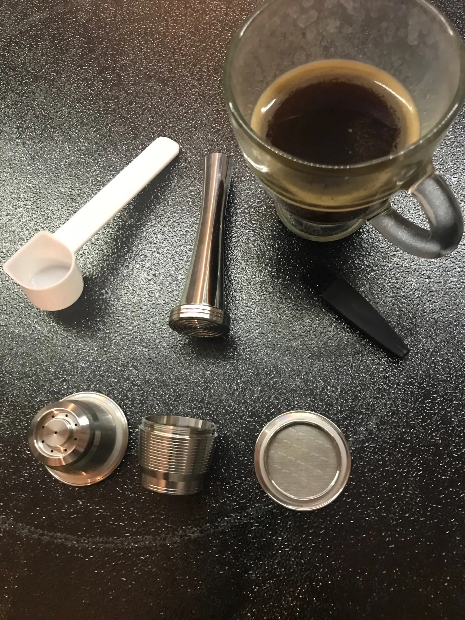 Très satisfait de la qualité globale du produit, finition très belle et très solide. J'ai pris le temps d'essayer les capsules avec une machine l'Or Barista, qu début, le café n'était pas terrible, trop claire, ça ressemblait plus à un jus qu'à un café espresso, je pensais que le problème venait des capsules en elles-mêmesp mais au fil des essais, je me suis rendu compte que le café que j'ai moulu moi-même était trop gros et trop épais, je l'ai fait repasser au moulin et là bim j'ai du café bien noir avec de la mousse, certes il faut remplir à ras (pour les capsules avec un couvercle qui se visse) et bien tasser mais je ne suis pas déçu du résultat qui ne diffère pas trop des capsules originales. Arrivé au bout de 8 jours en France après expédition, 9 jours au total depuis le jour de la commande.