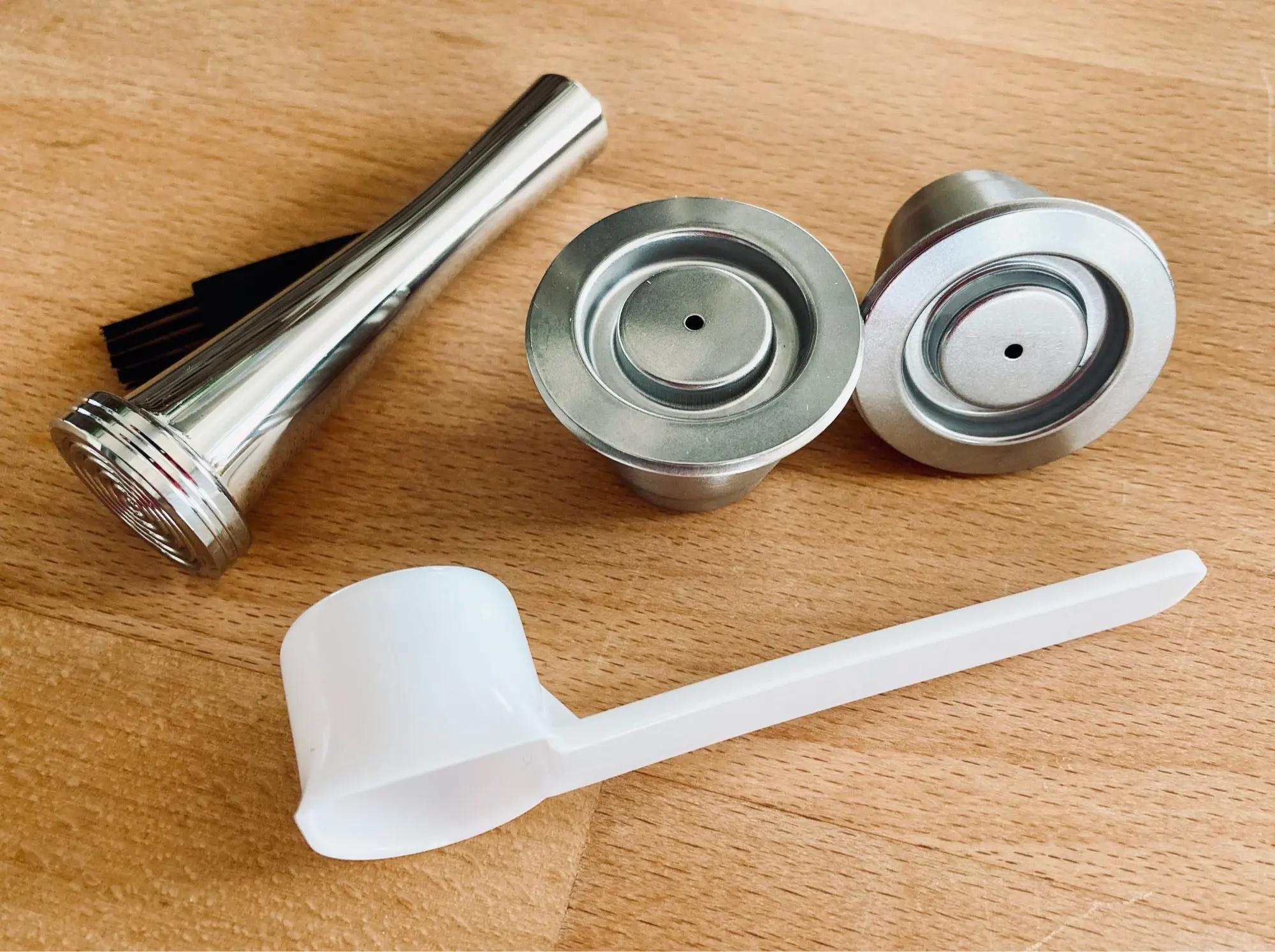 • Dzięki dołączonym akcesoriom możesz z łatwością napełnić kapsułkę ze stali nierdzewnej osobistą kawą, herbatą lub kakao.