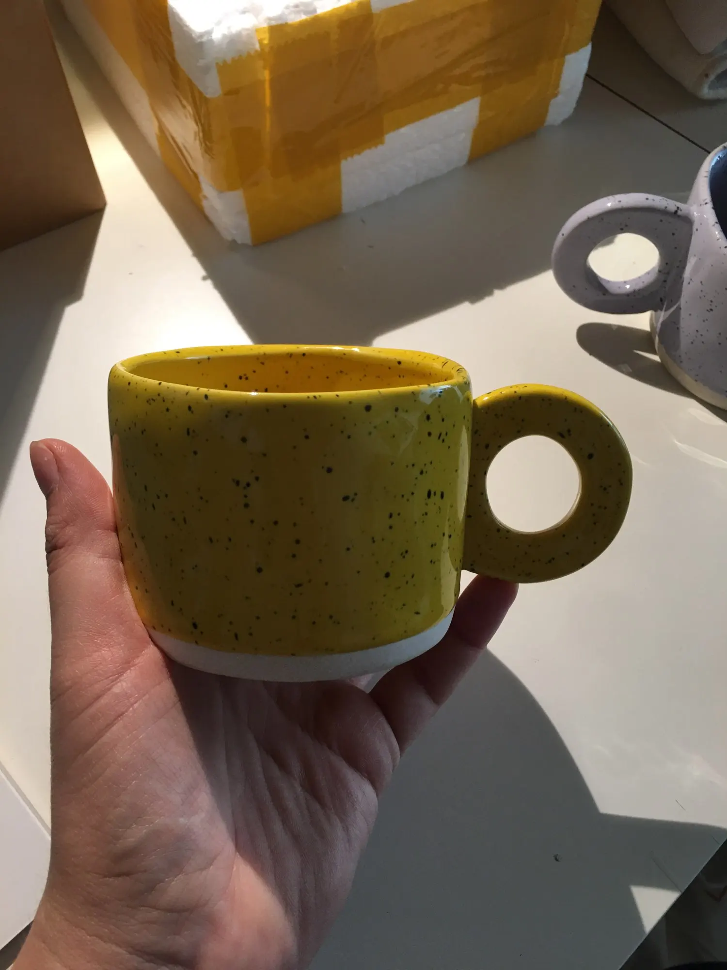 300ml kreatywny pierścień uchwyt kubek ceramiczny cukierki kolor filiżanka na mleko i kawę biuro strona główna Drinkware kuchenk