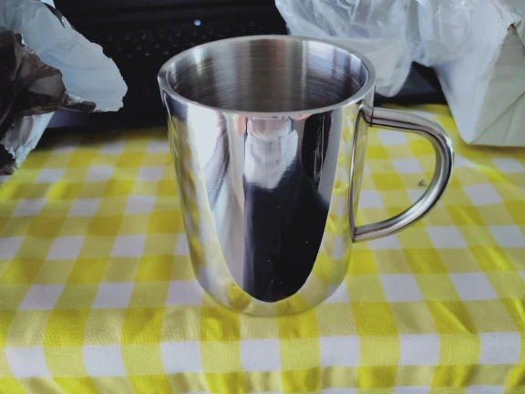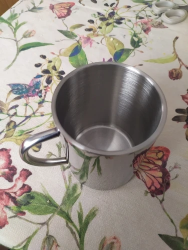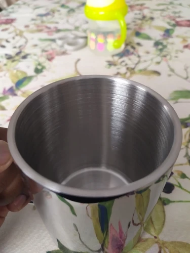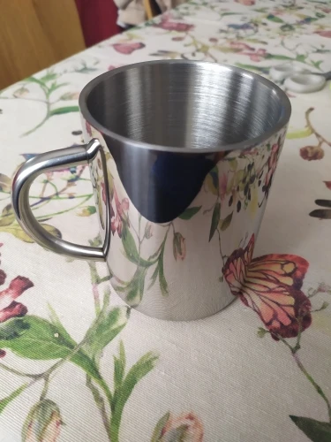 Ten kubek ze stali nierdzewnej jest higieniczny i trwały, odpowiedni dla dorosłych i dzieci. Użyj go do picia kawy lub ulubionego napoju.