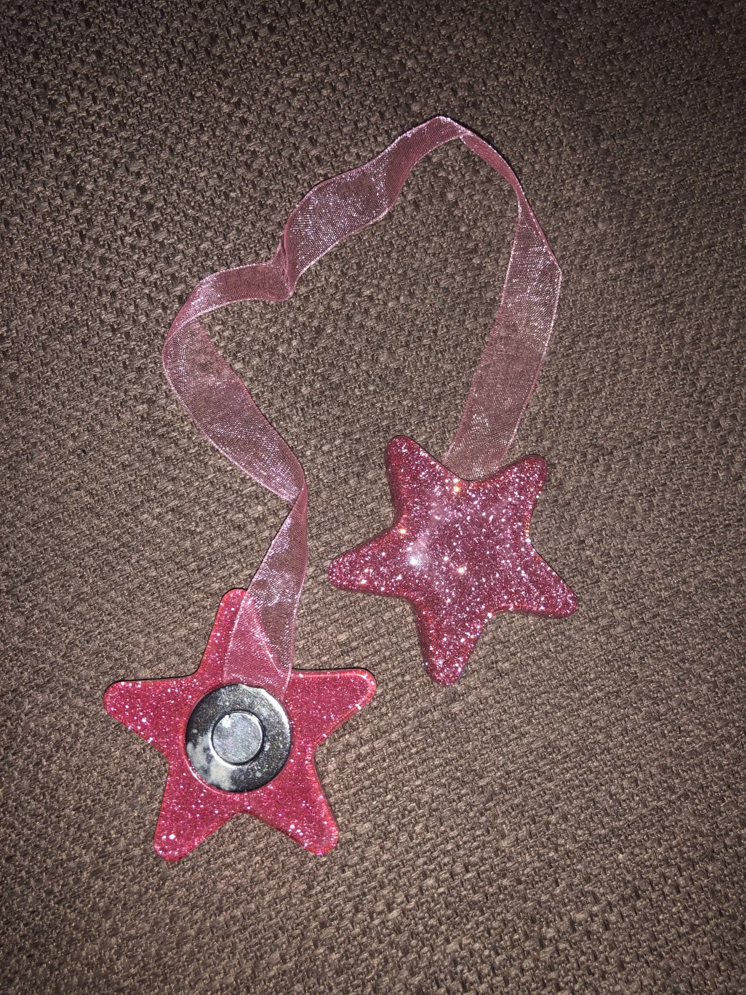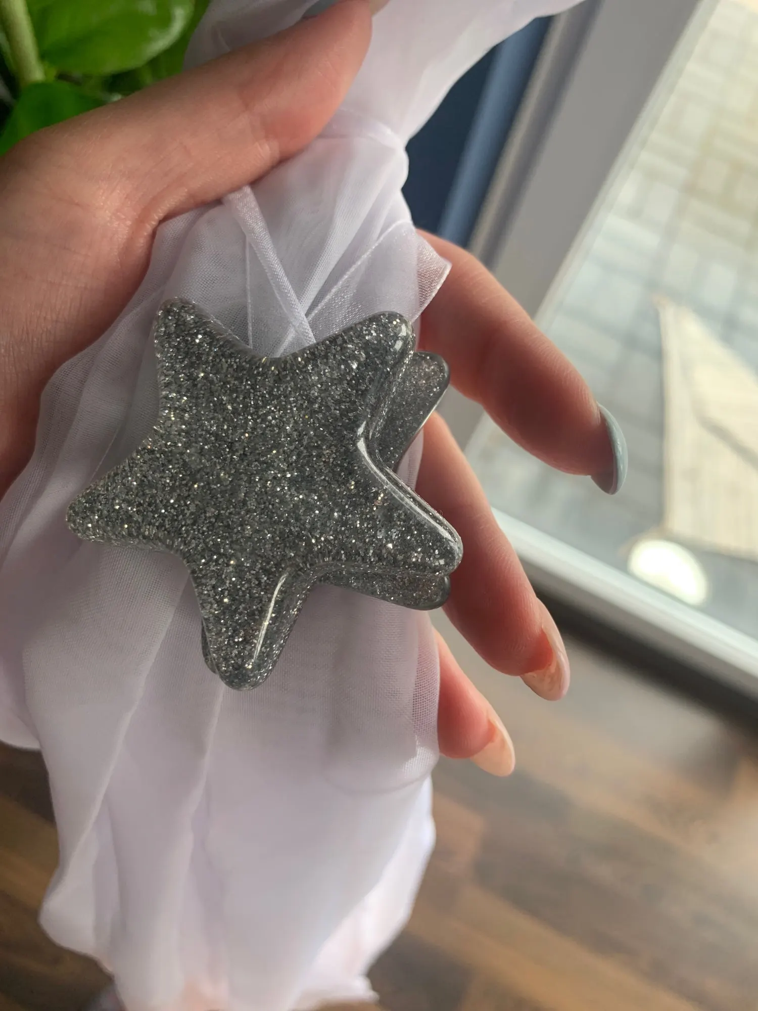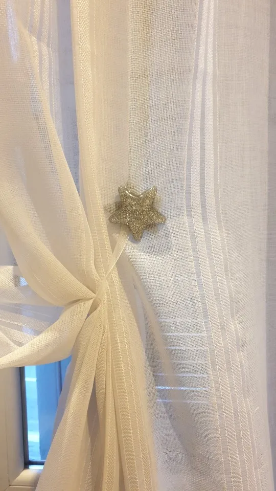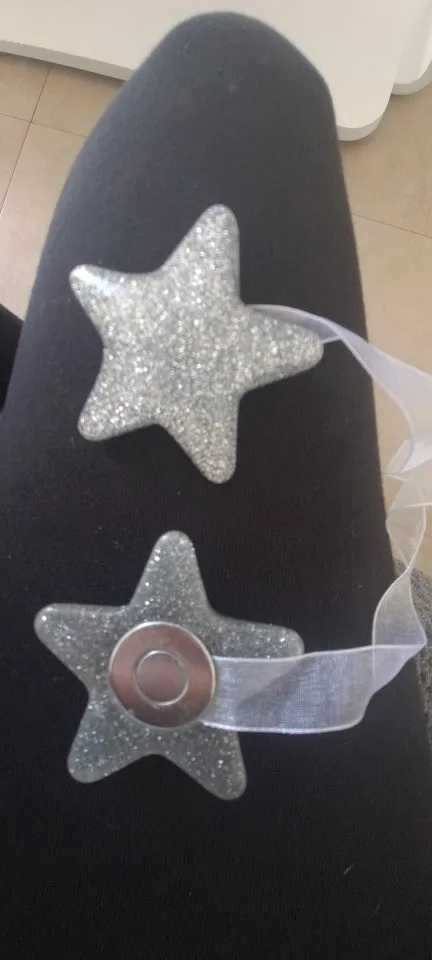Muy buen producto, la estrella es de plástico por lo tanto no suelta purpurina, las estrellas pesan un poco para la cortinas finas, pero me encantó, recomiendo la compra, a Baleares llego en unos veinte días aproximadamente!!!!!!