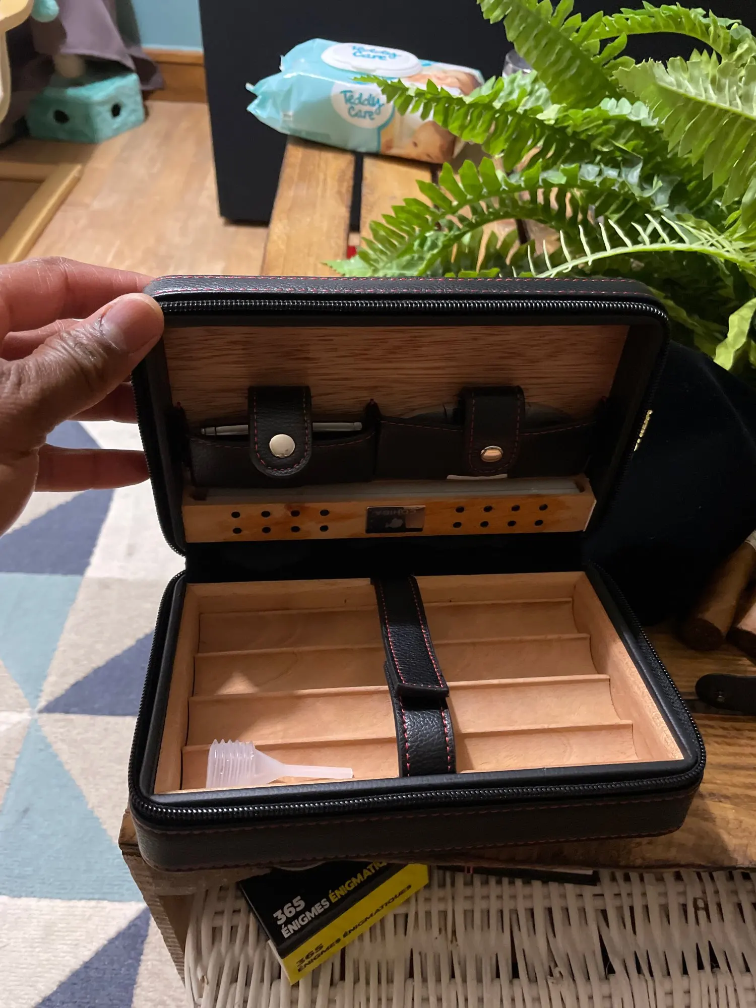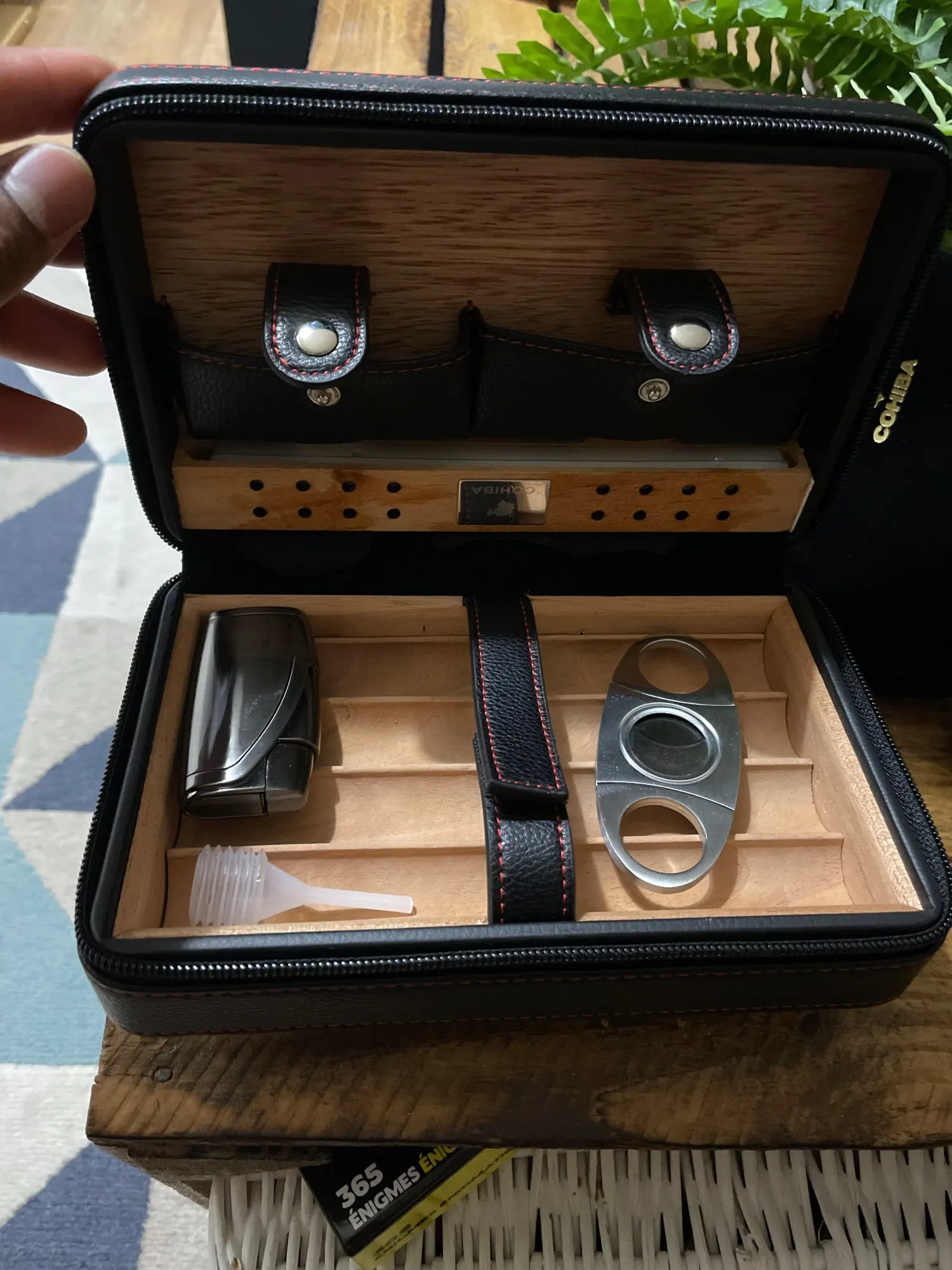Belle boîte à cigare avec un briquet et un coupé cigare inclus. Très satisfait de l’achat
