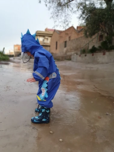 Rozmiar: Rozmiar S płaszcz przeciwdeszczowy długość 84 cm, rękaw 41 cm, klatka piersiowa 80 cm, odpowiedni dla dzieci o wzroście 85-100 cm Rozmiar M płaszcz przeciwdeszczowy długość 95 cm, rękaw 46 cm, klatka piersiowa 84 cm, odpowiedni dla dzieci o wzroście 101-115 cm Rozmiar L płaszcz przeciwdeszczowy długość 109 cm, rękaw 50 cm, klatka piersiowa 92 cm, odpowiedni dla dzieci o wzroście 116-135 cm