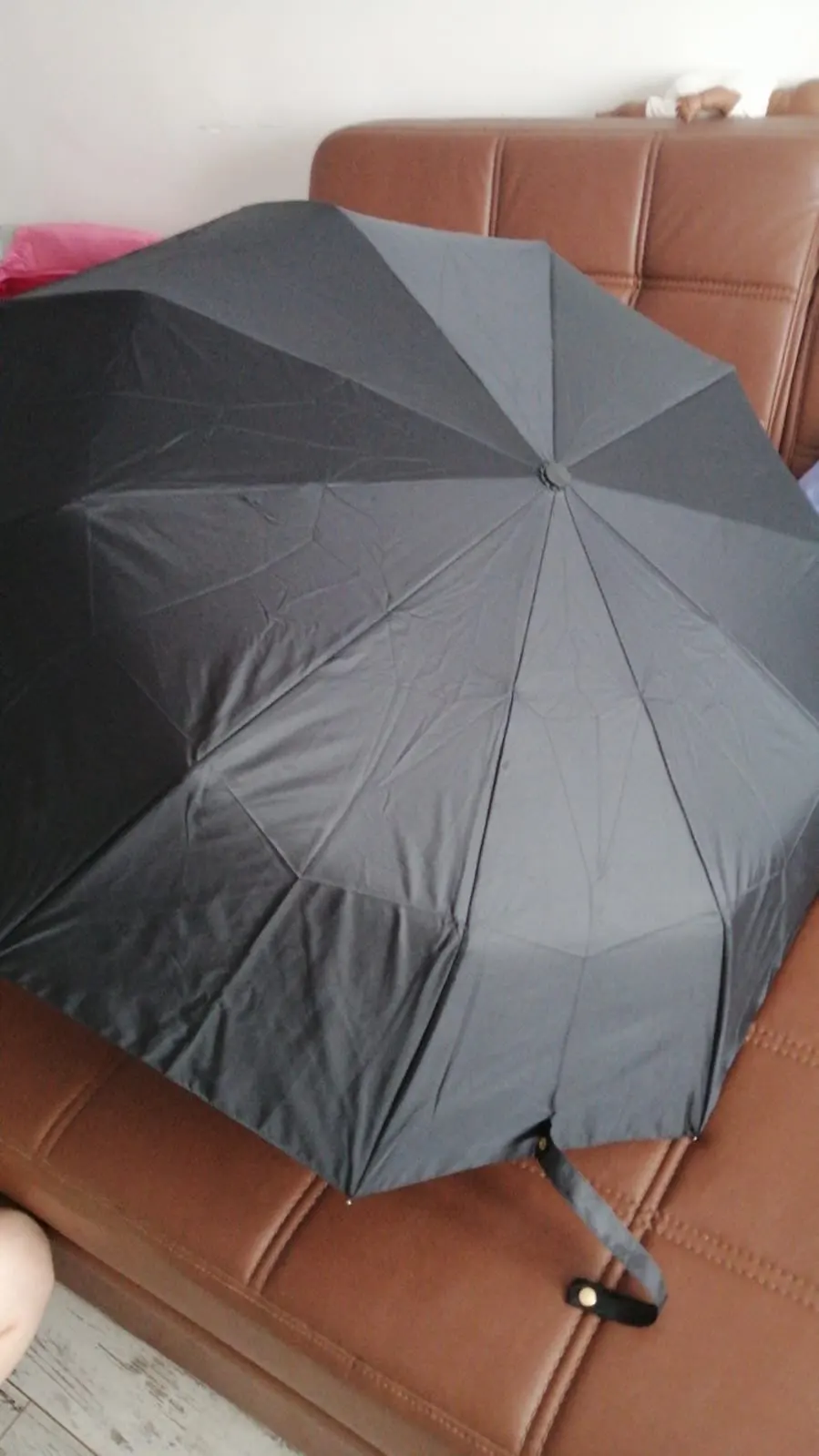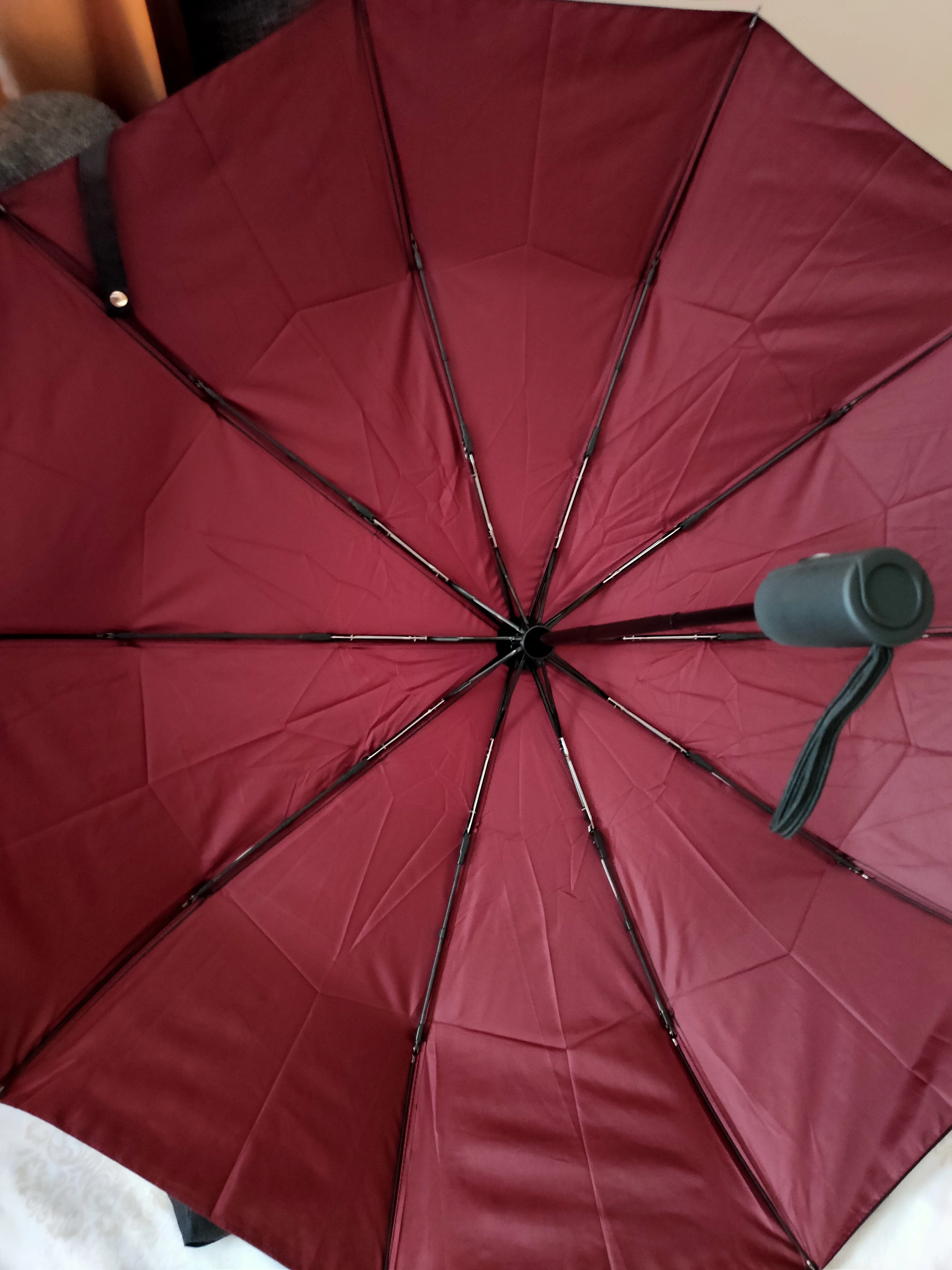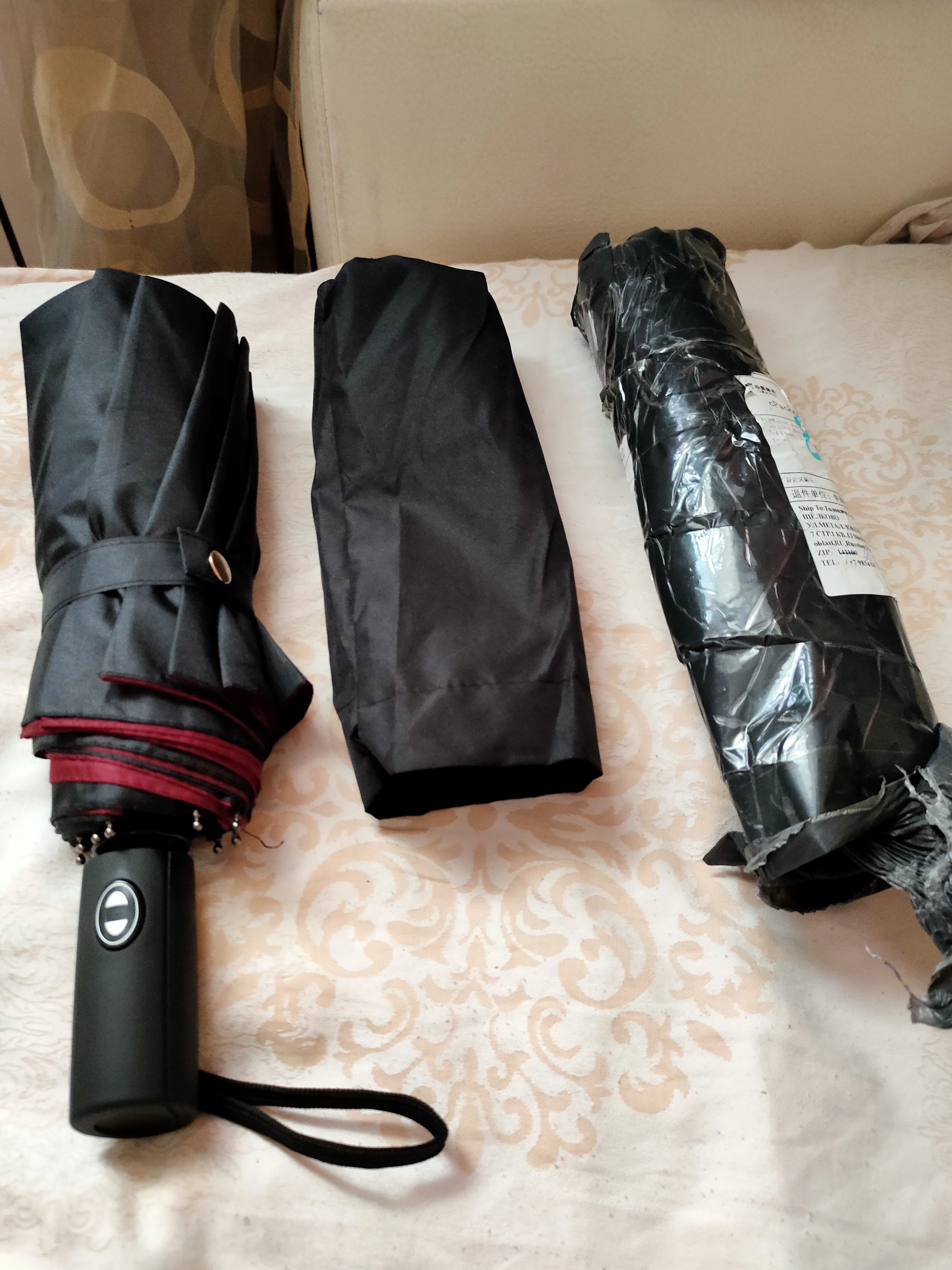 Доставка быстрая, примерно 3 недели. хорошо упакован. Сам зонт хороший, достаточно крепкий, кнопка туговата, но от случайного нажатия даже лучше. В погодных условиях еще не испытывался. ручка Soft tаch не скользит. чехол обычный мешочек. Соответствует описанию. больше добавить нечего.