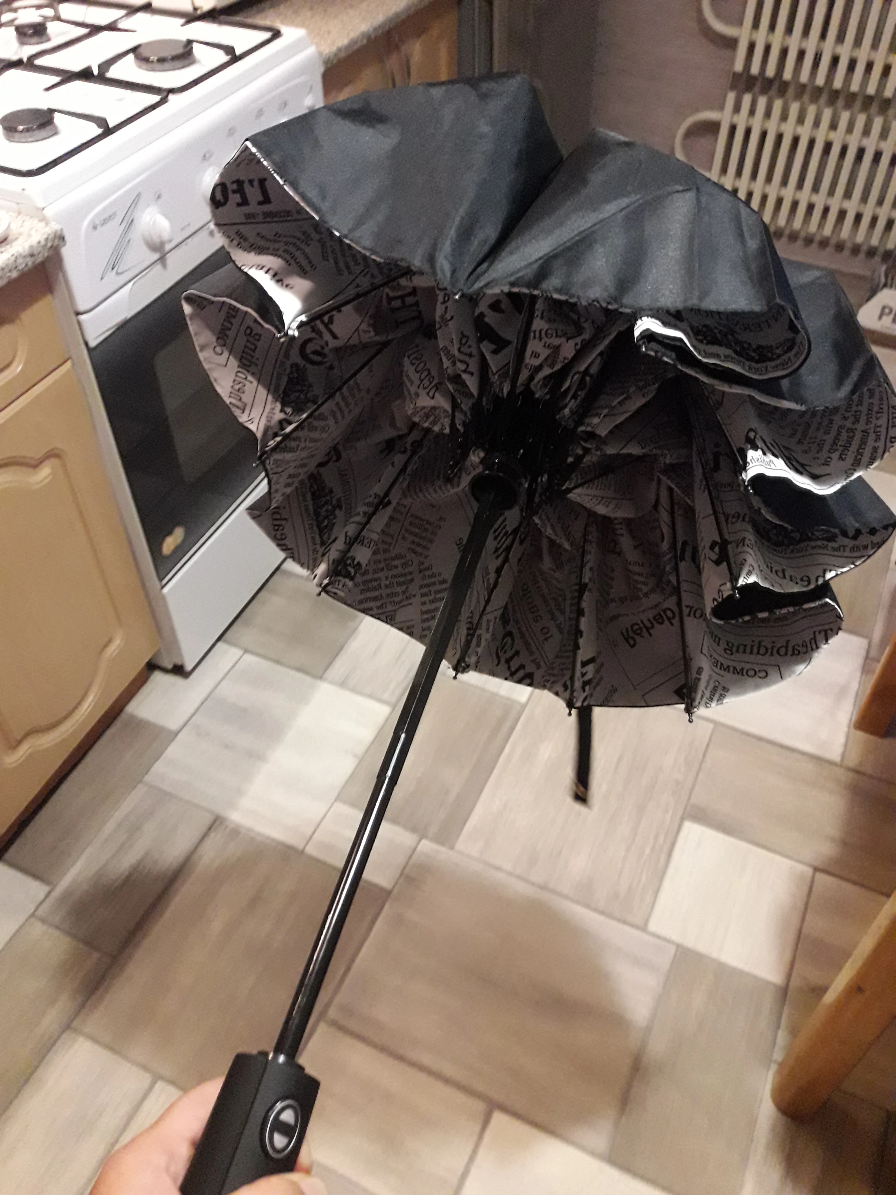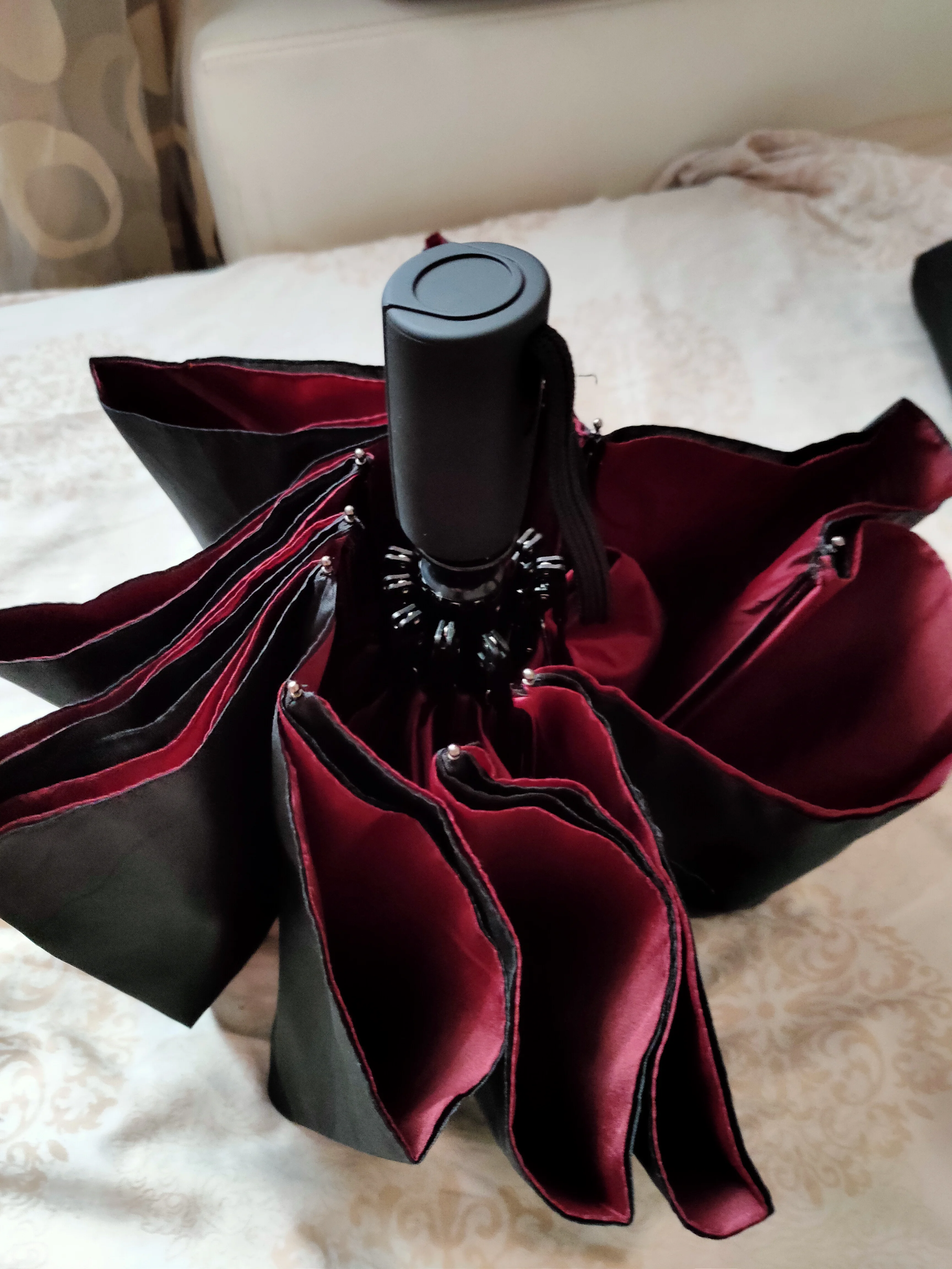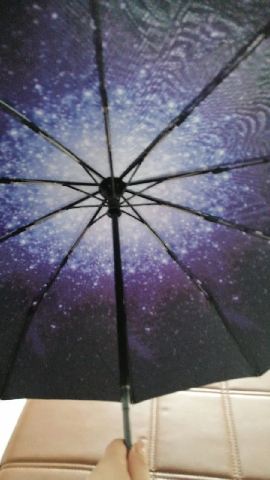 Доставка быстрая, примерно 3 недели. хорошо упакован. Сам зонт хороший, достаточно крепкий, кнопка туговата, но от случайного нажатия даже лучше. В погодных условиях еще не испытывался. ручка Soft tаch не скользит. чехол обычный мешочек. Соответствует описанию. больше добавить нечего.