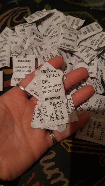 Chroni twoje towary przed uszkodzeniem przed kondensacją Pochłania do 30% swojej wagi Stan: nowy Rozmiar: 4x3 cm Waga: 1 gram Materiał: żel krzemionkowy owinięty trwały papier
