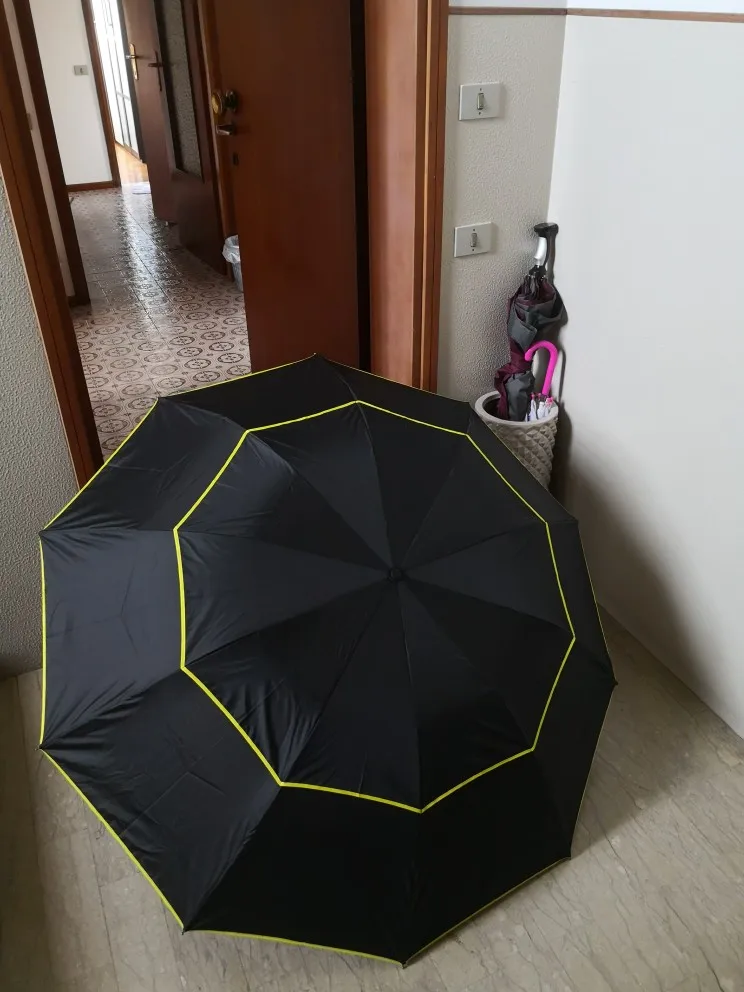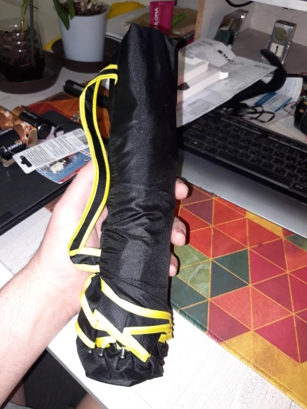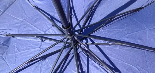 Зонт большой , вместительный, складывается компактно , конструкция крепкая и довольно таки легкая . Ручка была смазана заводской смазкой - будьте аккуратны, ручка крепкая, 8 гранная - зонт при сильном ветре не крутит.