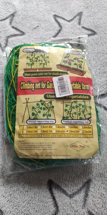 Materiał: Nylon Rozmiar: 0.9X1.8M 1.8X1.8M 1.8X2.7M Mesh 10*10 cm Wprowadzenie produktu: zielona siatka nylonowa, przymocowana na cztery rogi, siatka 10*10 cm, używana do ogórka, loofah, powojników, porannej chwały i pełzających winorośli. Cechy produktu: nie tylko pomaga w zarządzaniu baldachimem, umożliwiając roślinom wystawienie na działanie najlepszego powietrza i światła, ale także pomaga zmaksymalizować przestrzeń i zmniejszyć kontakt z podłożem, co prowadzi do korupcji roślin. Lista produktów: sieć indeksowania * 1