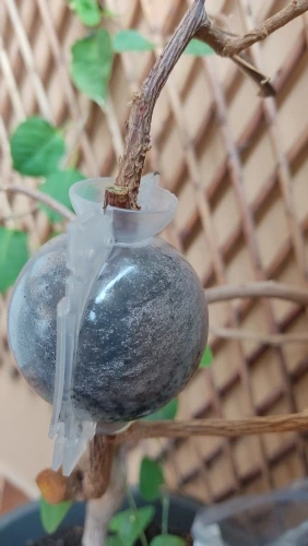 Todo perfecto y muy práctico! Sirve para tallos finos (en las fotos, acodo aéreo en una rama de mi buganvilla). Es muy cómodo.