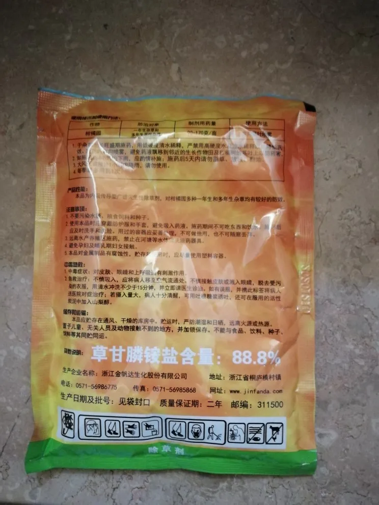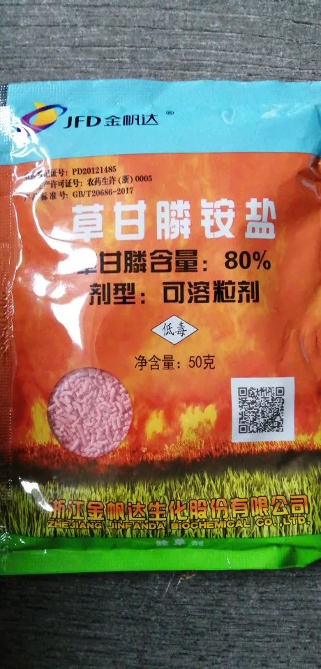 Rola: może kontrolować ponad 40 gatunków roślin, takich jak monotypowe i dwutypowe, roczne i wieloletnie, zielne i krzew. Glifosat amonowy szybko traci swoją aktywność, gdy jest połączony z jonami metali, takimi jak żelazo i aluminium.