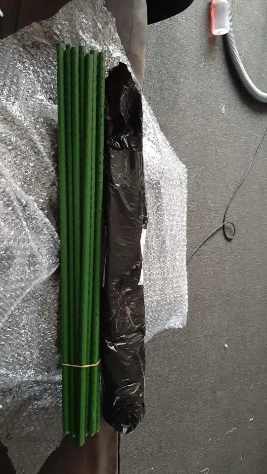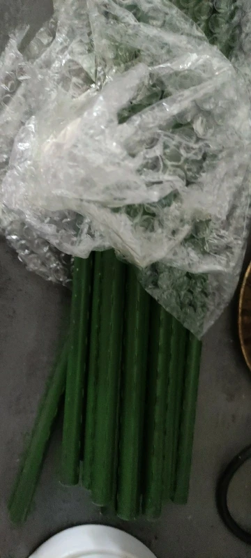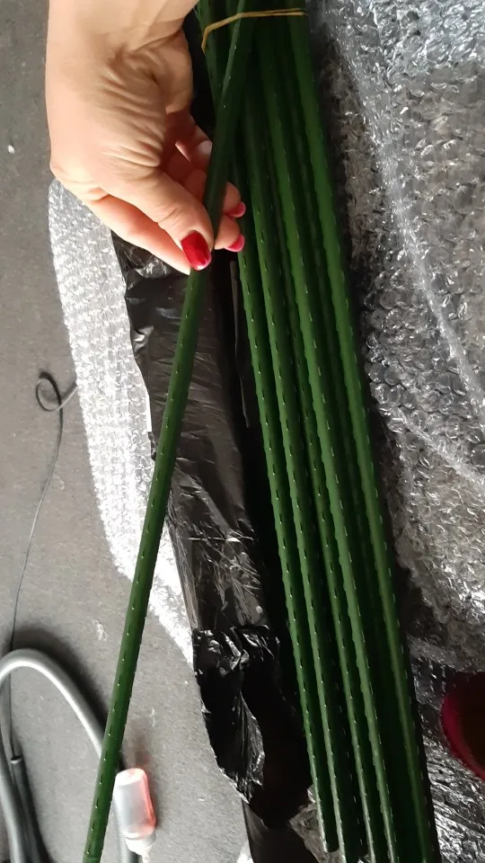 Viene bien empaquetado y protegido. Es exacto a la descripción, son de 60cm, color verde y de plástico, el cual se ve resistente. No ha hecho falta ponerme en contacto con el vendedor porque el envío ha sido rápido para venir de China y viene en perfecto estado. Tanto producto como vendedor recomendables