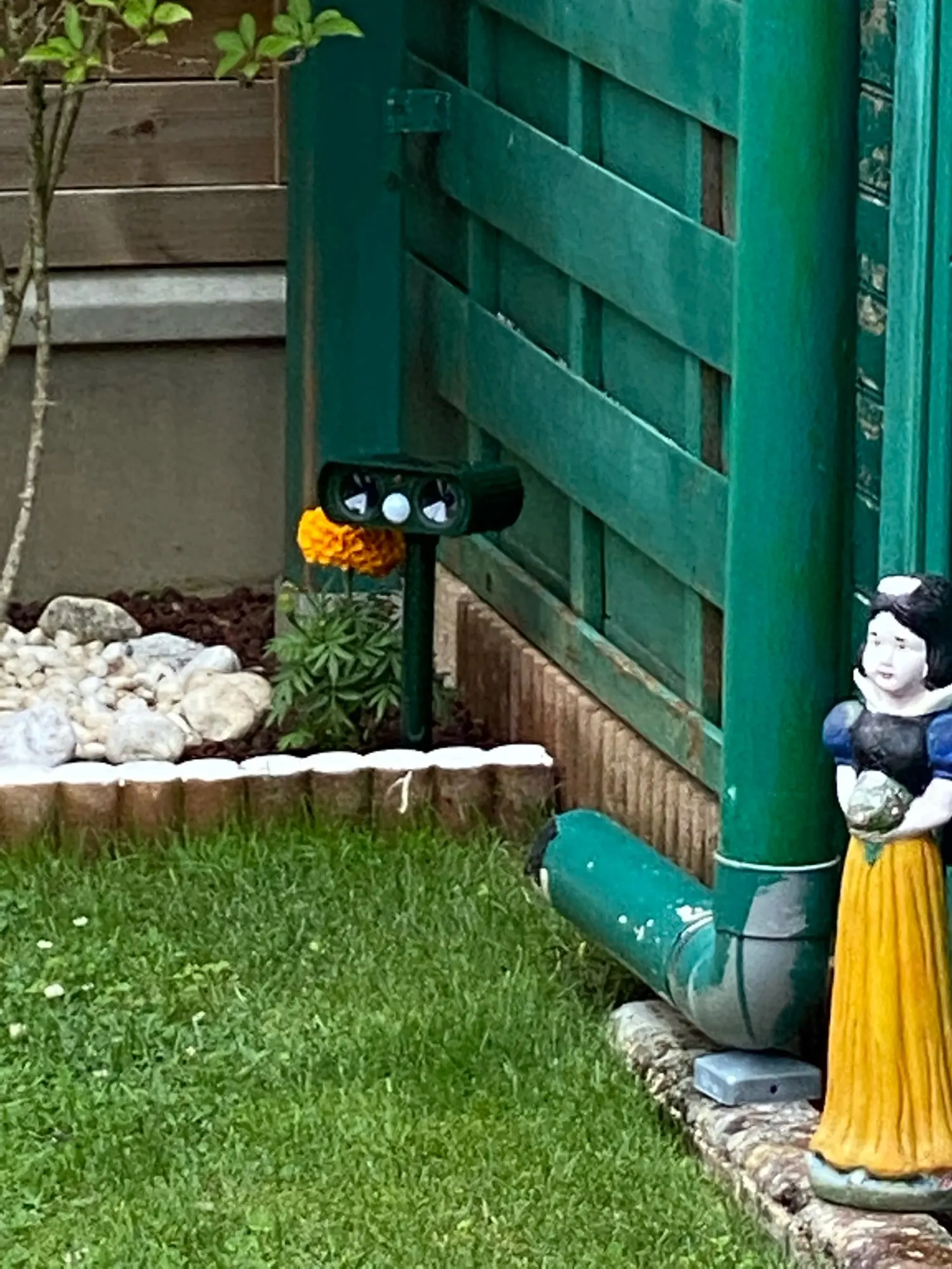 Wykorzystuje zasadę wykrywania podczerwieni, w wykrywaniu małe zwierzęta w tym samym czasie, aby emitować fale ultradźwiękowe, aby napędzać małe zwierzęta. To może pomóc utrzymać się z dala od nasty bezpańskie psy, bezpańskie koty i inne małe zwierzęta prześladowania, w ten sposób chroniąc twoją własność, twój ogród i ogrodu.