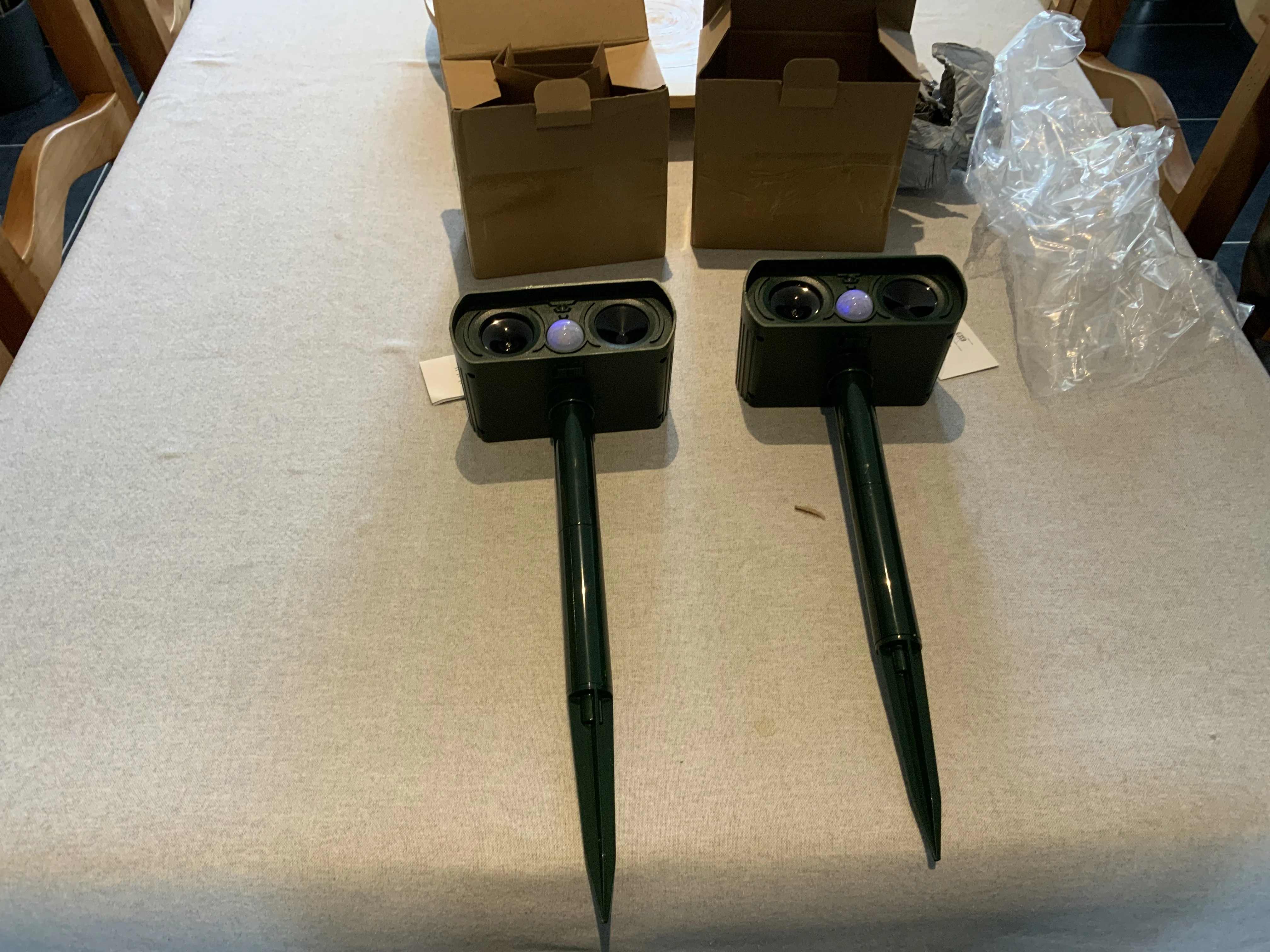 , Ponieważ jest to przenośna konstrukcja produkt, który może być zainstalowany w domu, ogrodzie, lub w dowolnym miejscu na dziedziniec, ten produkt może być używany z niski poziom naładowania baterii moc, produkt jest tylko po to, aby napędzać zwierzę bez żadnych chemikaliów, wydaje się tylko 25 khzoudosów, aby je odprowadzić. Nie będzie miał żadnego szkody dla ludzkiego ciała