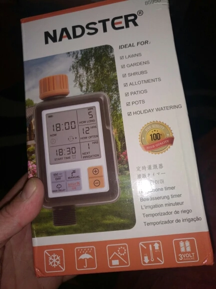 Instrukcja produktu: > Ten timer pozwala zaprogramować go i będzie cię podlewać. Funkcja: > Wodoodporny stopień IP65, może być używany na zewnątrz > Zasilanie bateryjne (bateria AA) (brak w zestawie) > Wewnętrzny wytrzymały zawór elektromagnetyczny > Zużycie ciśnienia: od 0 do 10 bar (0-116 funtów na cal kwadratowy) > Temperatura pracy: 5-60 ° c (40-140 ° f) > Może być używany do ręcznego podlewania (on / off) > Może być podłączony do 3/4 cala, 1/2 cala kranów lub kranów Po zdefiniowaniu programu zapętla się wielokrotnie, aż do nowego ustawienia > Czas interwału: 1-23 godziny, 1-15 dni > Czas nawadniania: 1-59 sekund, 1-300 minut