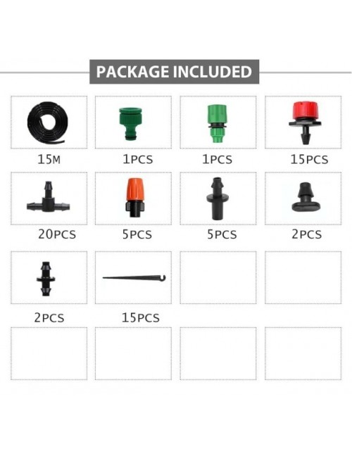 Opis: -Wąż ma 1/4 cala rura PVC, -Podlewać wszystkie rośliny na raz. Po zainstalowaniu sprzęt do podlewania, wszystko, co musisz zrobić, to włączyć kran, gdy jest to potrzebne. -Automatycznie rośliny wodne codziennie podczas pracy lub podróży (wymaga timera). -Oszczędza cię od przeszkadzania sąsiadom i pomaga dbać o rośliny, gdy jesteś poza domem. -Każda dysza może być indywidualnie dostosowana do potrzeb wodnych różnych roślin. -Łatwy w instalacji, nie wymaga umiejętności górniczych ani hydraulicznych. Łatwa instalacja za pomocą instrukcji ze zdjęciami.