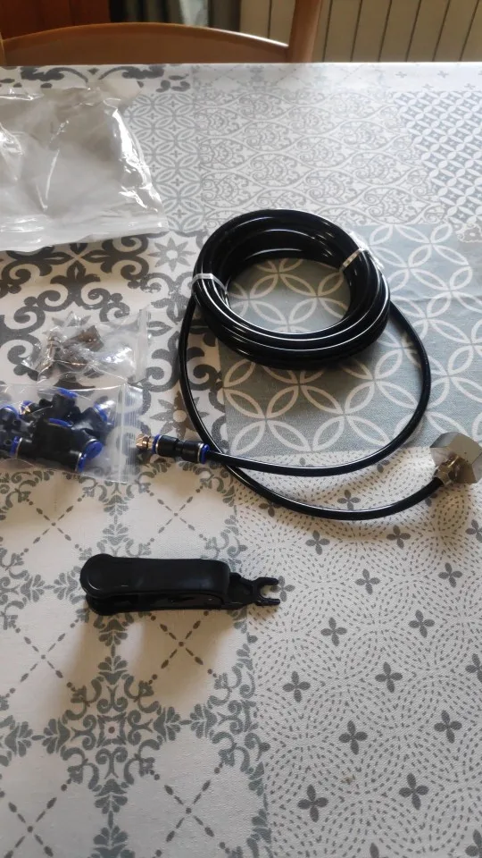 5m zestaw akcesoriów: 3/4 "wewnętrzne złącze miedziane x 1 (amerykańskie i europejskie standardy opcjonalne), 5m/196.85in wąż wodny x 1, niskociśnieniowa miedziana dysza atomizująca x 5, 3-way x 4, 1-way x 1, wąż cutter x 1