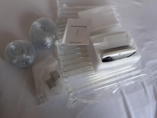 Llegó muy rápido, menos de 15 días. Bien embalado, pero sin caja original. El manual está en dos idiomas, Chino y Inglés. Explica paso a paso cómo configurar el dispositivo, incluido un diagrama de secuencia. Las conexiones en forma de T son muy rígidas. Pendiente de probarlo.