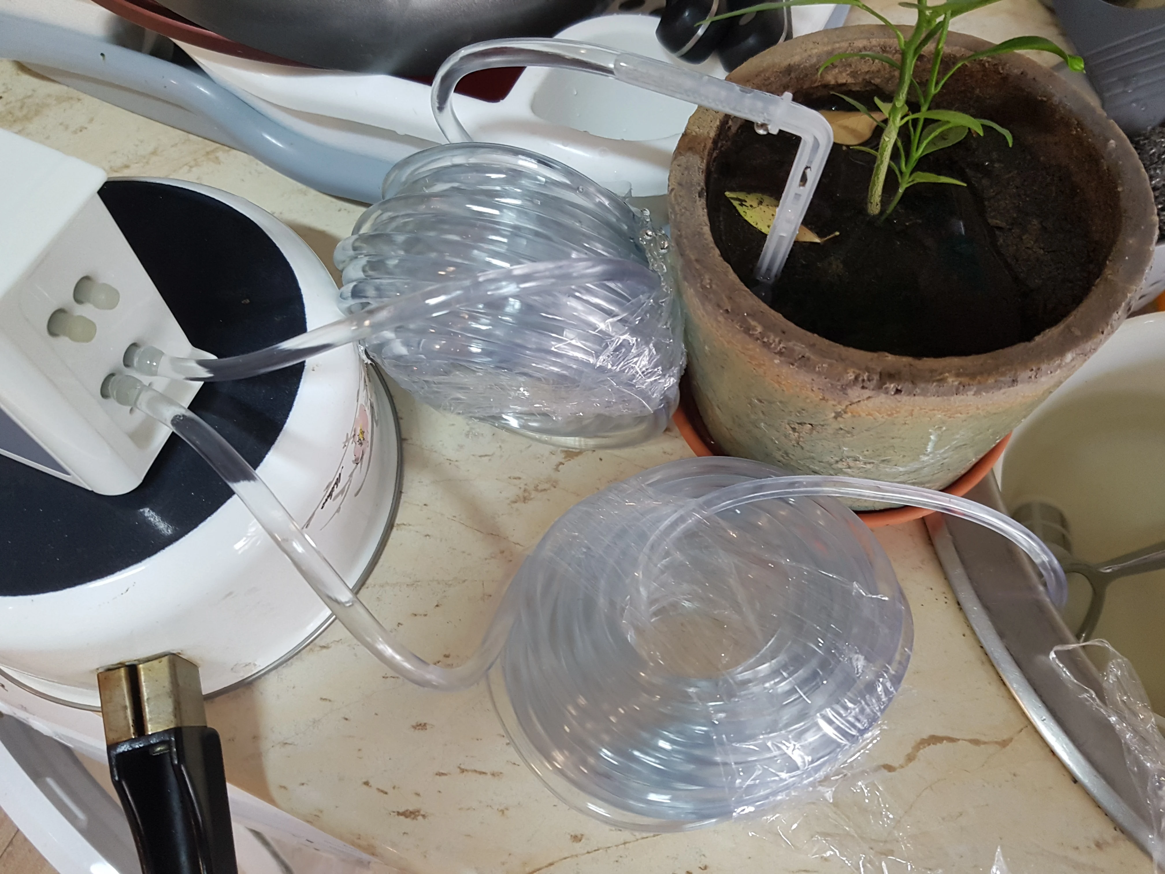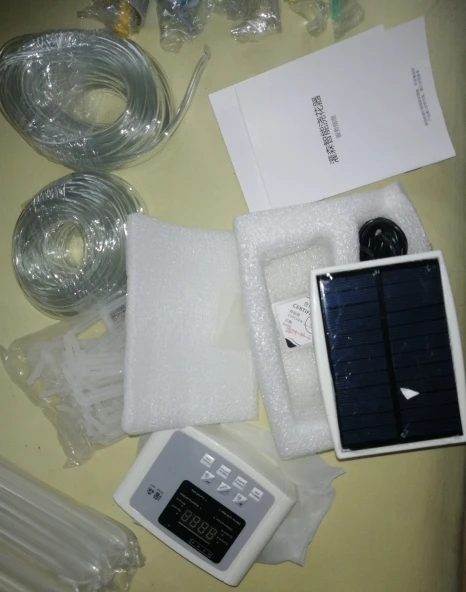 W tym akcesoria: host, panel słoneczny, rura PVC przezroczysta woda, jako tee, rura wodna PP