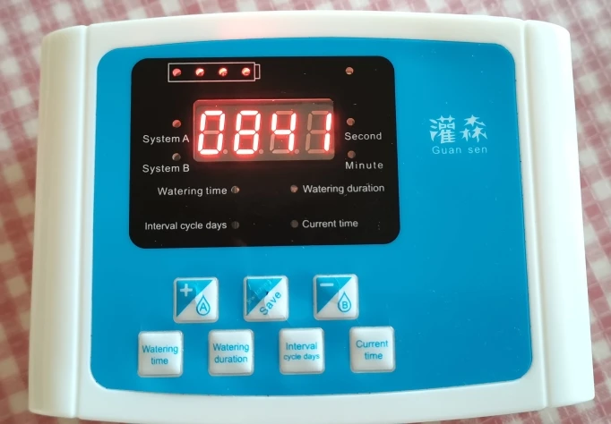 1. Naciśnij i przytrzymaj dwa przyciski "czas nawadniania" i "dni cyklu interwałowego", aby przełączać się między trybem podwójnej pompy/pojedynczej pompy