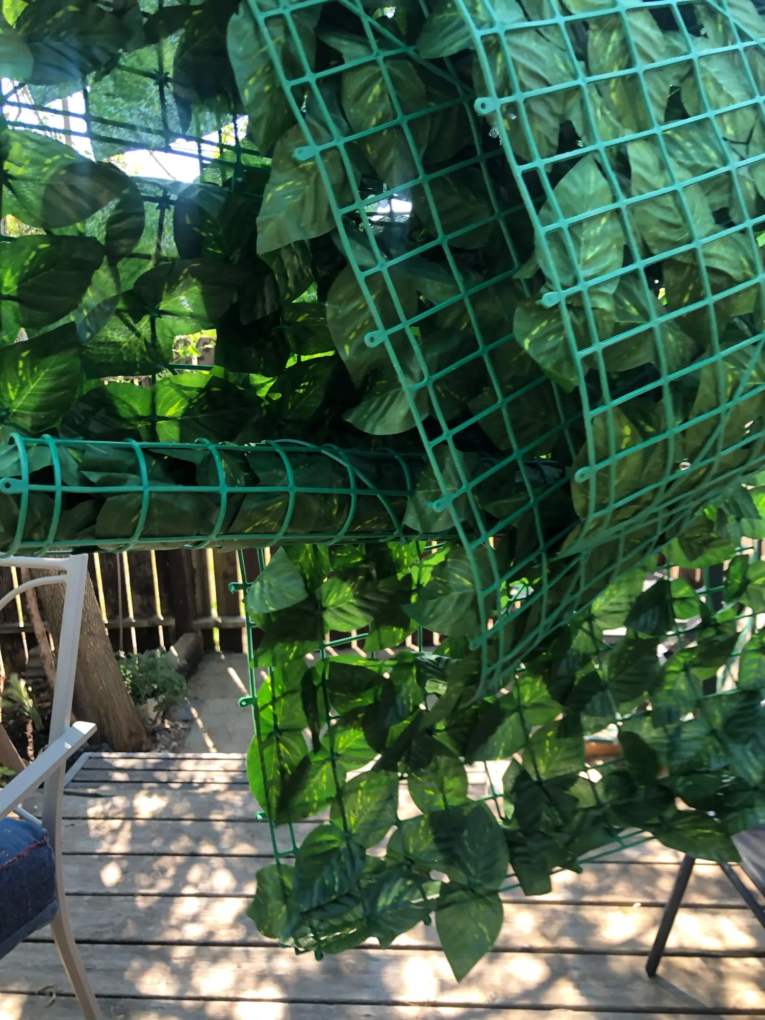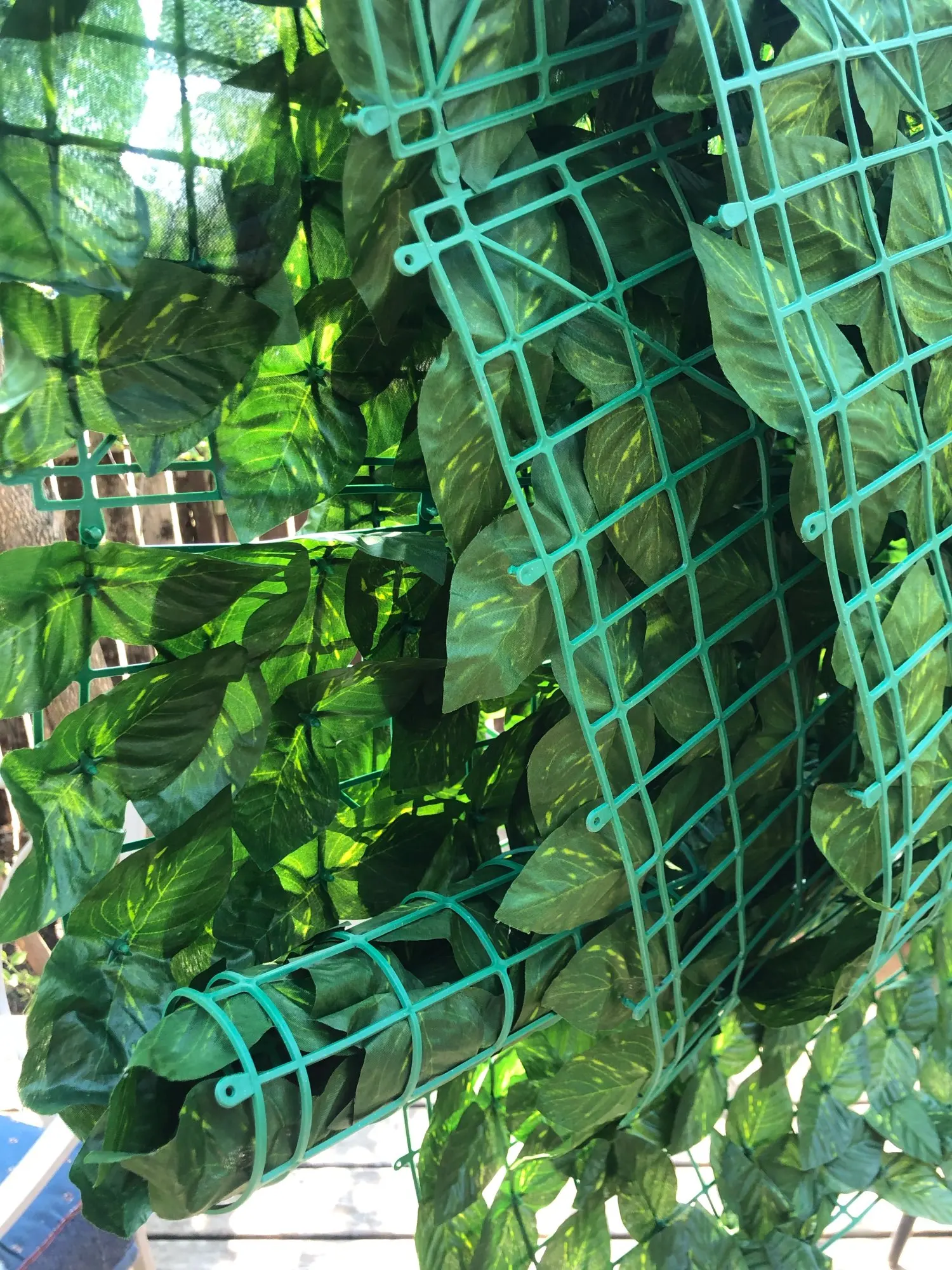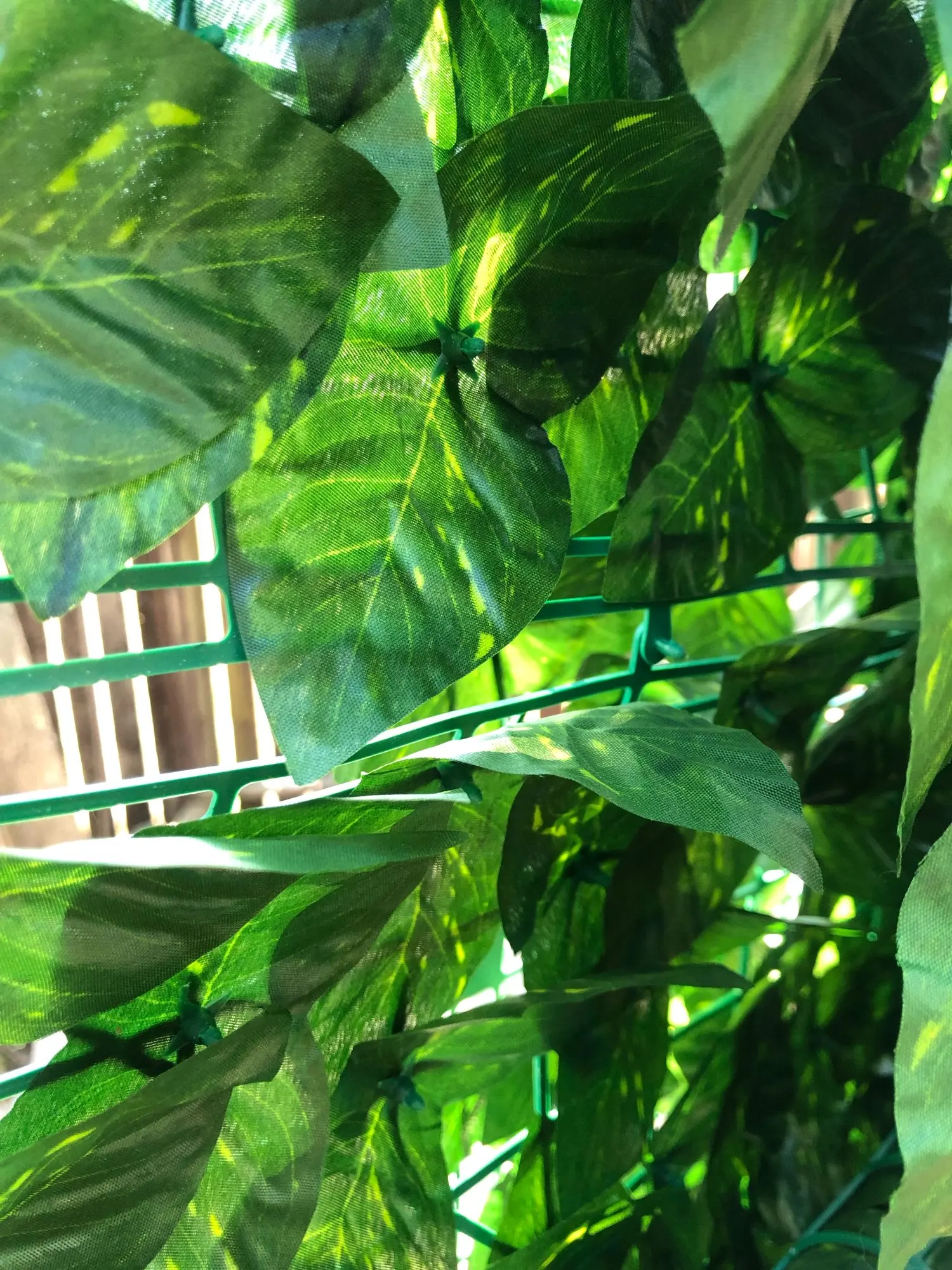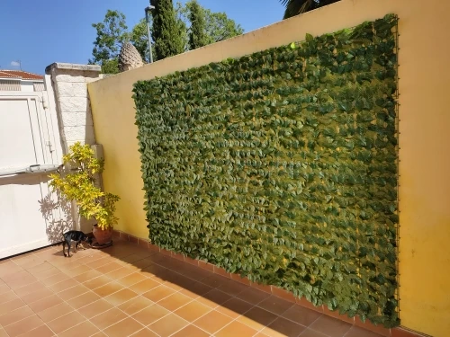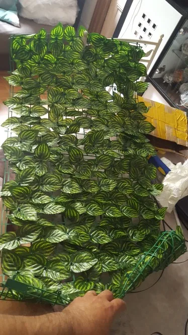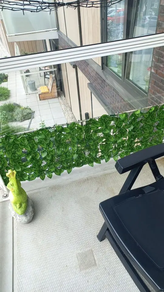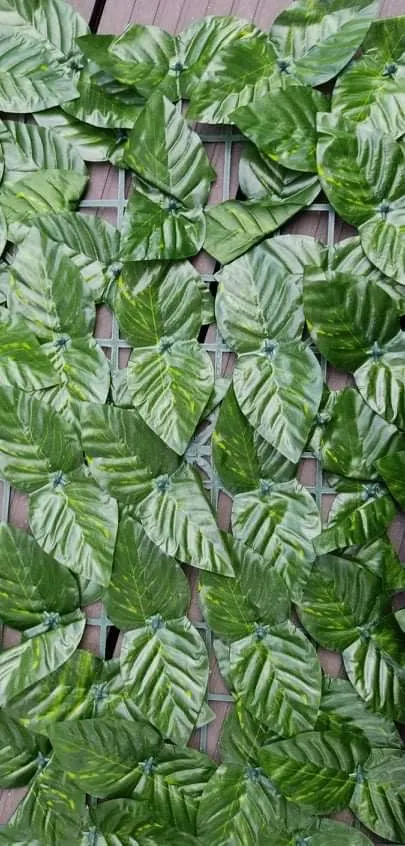 4. Wygodna instalacja i łatwe czyszczenie: siatka z tyłu ogrodzenia może być płynnie podłączona i przycinana. Z dobrą elastycznością może być zgięty. Liście winorośli mogą utrzymywać wiecznie zielony wygląd przez cały rok bez podlewania i przycinania, łatwe do czyszczenia i konserwacji.