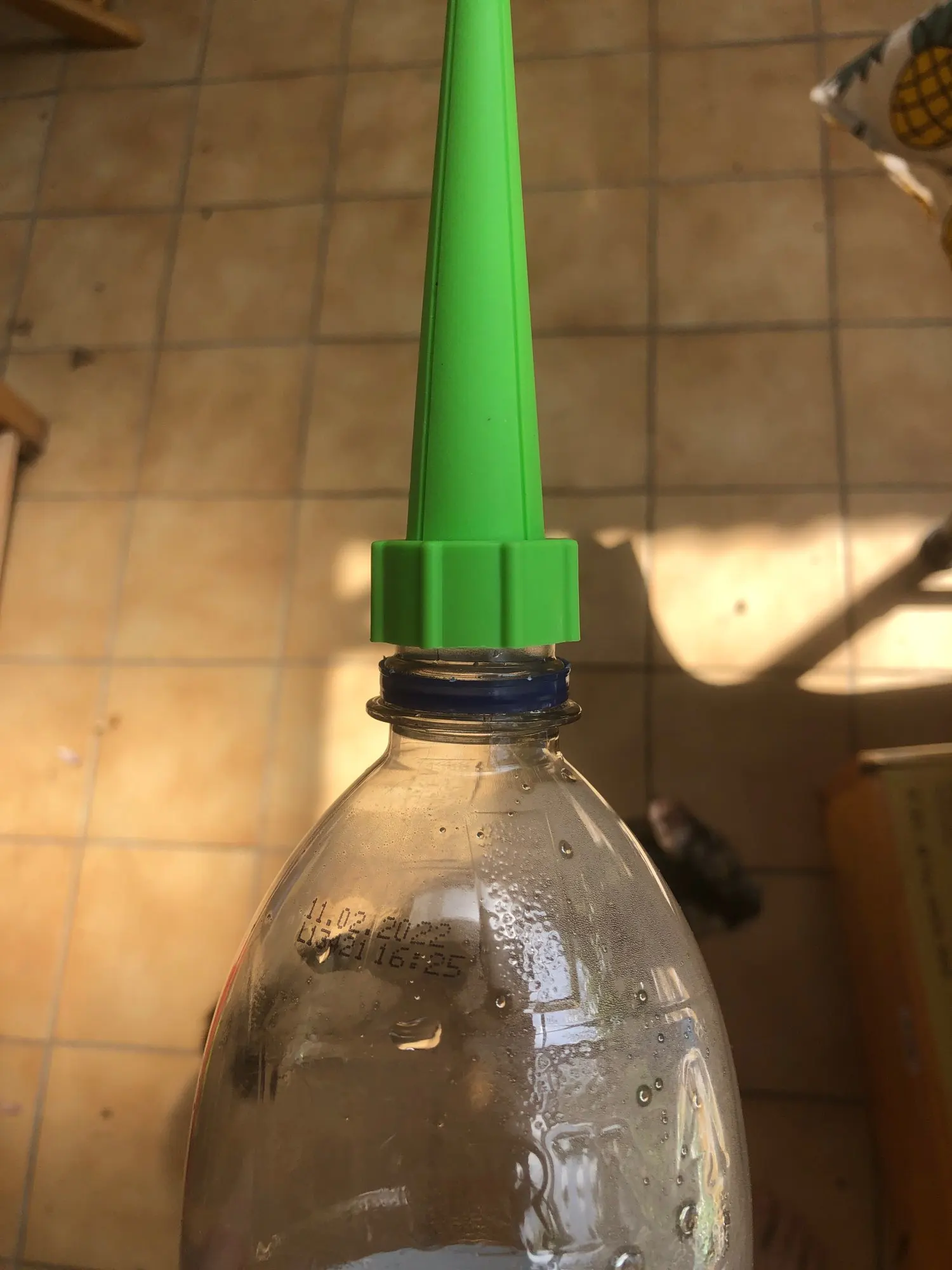 Aby normalnie kapać wodę, wywierć otwór w dolnej części butelki.