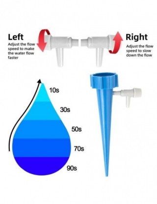 1: natężenie przepływu można kontrolować, a urządzenie do podlewania roślin z zaworem regulacyjnym może kontrolować prędkość kroplówki 0-60s / 1 kroplówki, A kroplówka o przedłużonym uwalnianiu trwa 1-15 dni