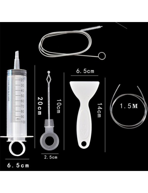 Włóż elastyczny trzpień (najpierw koniec szczotki) do rurki i delikatnie wyszoruj wnętrze podczas pracy szczotki z powrotem. A potemNsert ukośne gniazdo rury w otwory spustowe. Wstrzyknąć gorącą wodę (158-176℉) Aby wypłukać blokadę w odpływie. Jeśli napotkasz przeszkody podczas wkładania rurki, powinieneś kontynuować jazdę gorącą wodą, aby stopić lód.