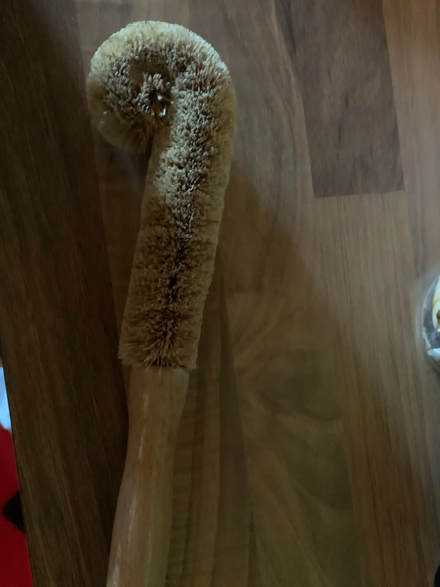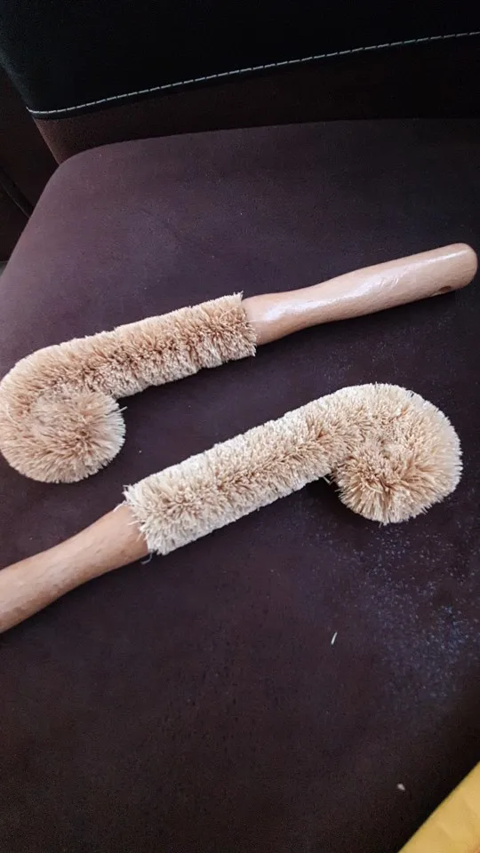 Płaska szczoteczka z naturalnej palmy kokosowej z drewnianym uchwytem bezolejowa kuchnia z drewna płaska szczoteczka płaska szczoteczka artefakt długa rączka płaska szczoteczka