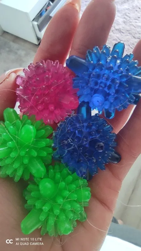 Заказ был в пути очень долго, уже думала, что дождусь. Количество шариков совпадает, качество на первый взгляд нормальное, может есть какие-то мелкие дефекты, типа чёрных точек, но, думаю, это не критично, в машинке постираются) в деле пока не пробовала, после использования дополню отзыв