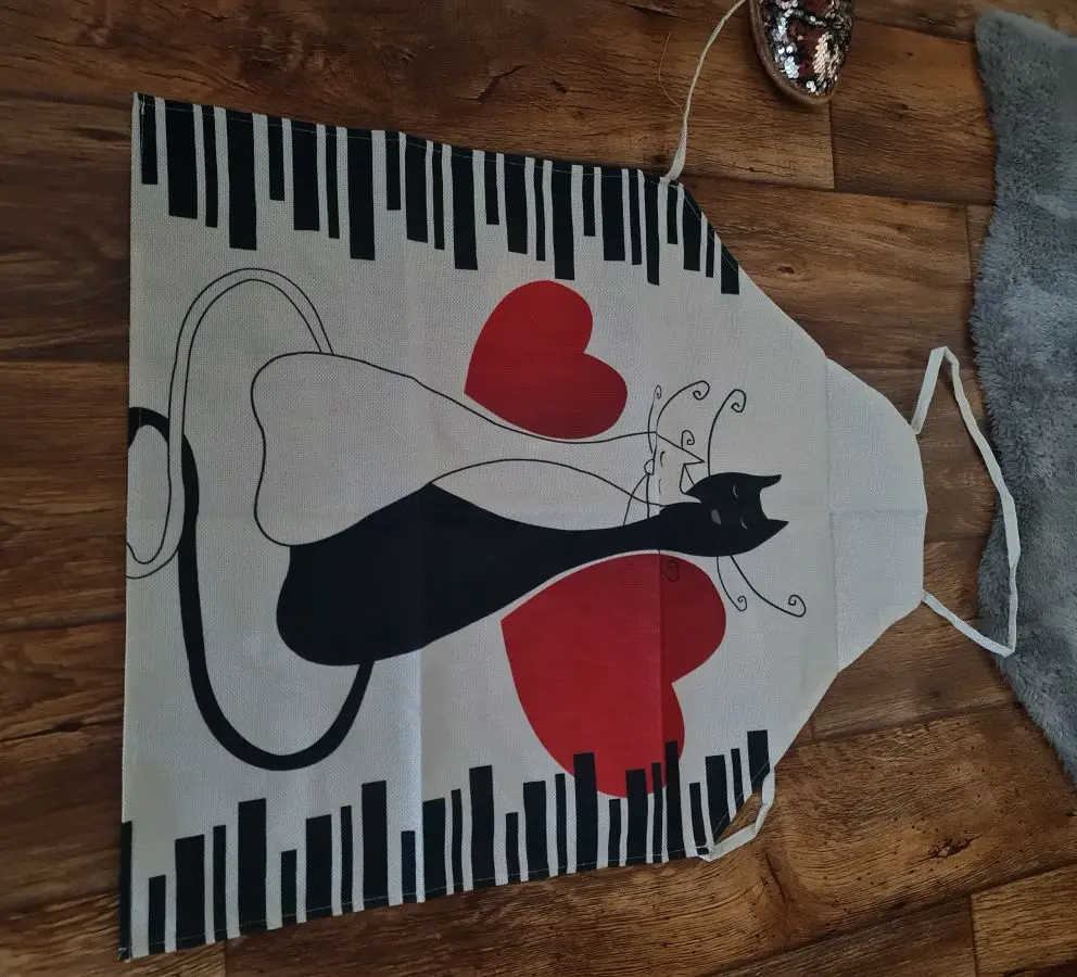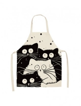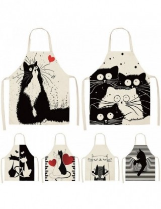 Czarny słodki kociak drukowane kuchnia gotowanie pieczenia fartuchy 53*65cm bez rękawów z bawełnianą podszewką dla kobiet Man Ho