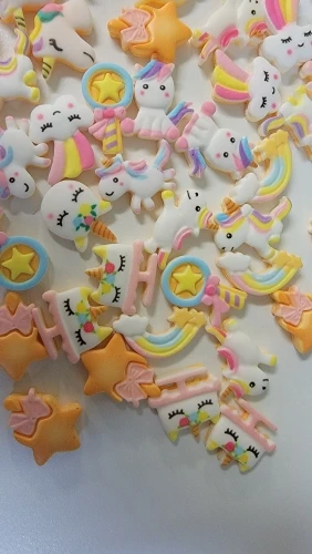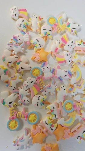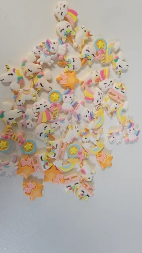 50 sztuk/partii śliczne jednorożec rzemiosło Rainbow Cartoon Flatback planarna żywica łuk materiały DIY sztuka i rękodzieło naklejki akcesoria mieszane A80