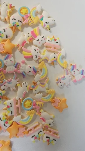 50 sztuk/partii śliczne jednorożec rzemiosło Rainbow Cartoon Flatback planarna żywica łuk materiały DIY sztuka i rękodzieło nakl
