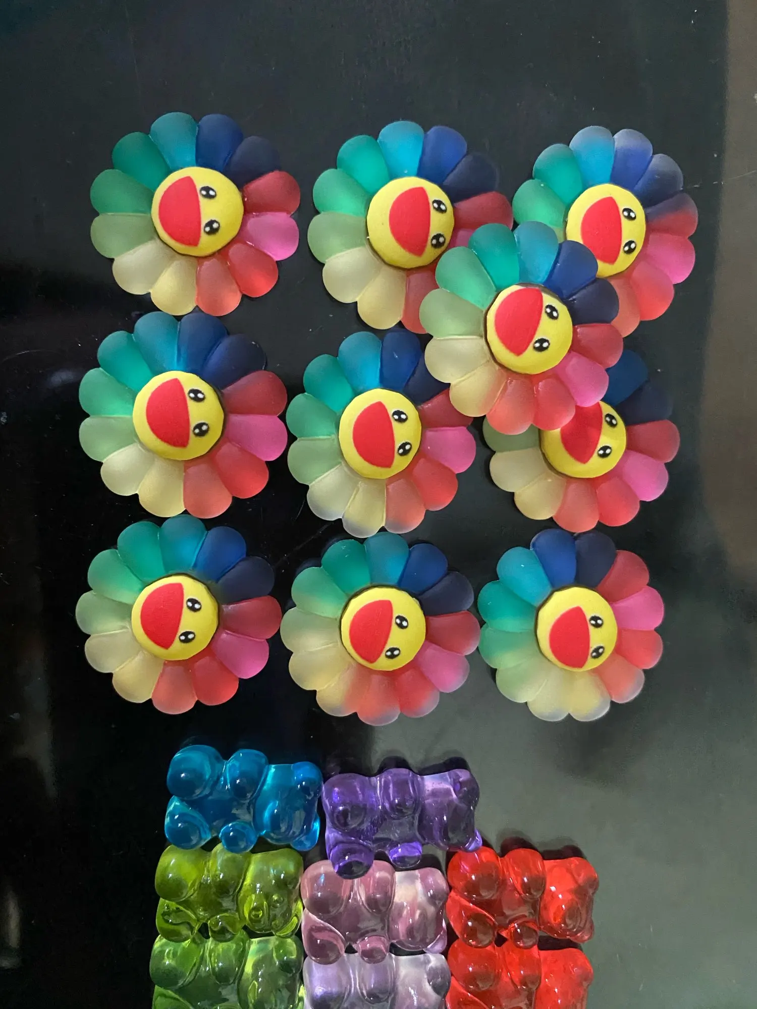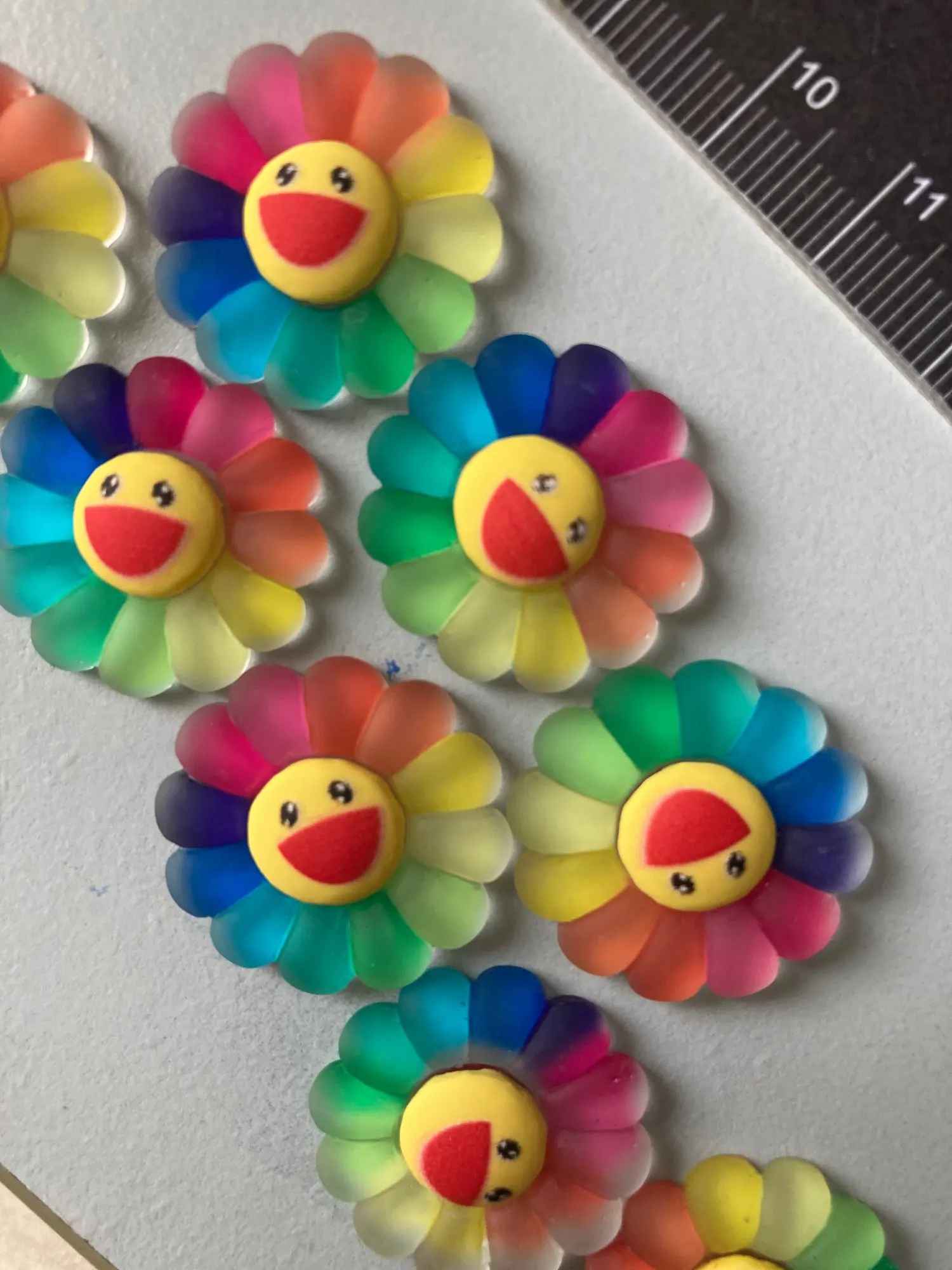 10/5pc śliczne żywica Flatback Rainbow słonecznik uśmiech twarzy Cabochons żywica płaskie ozdoby do dekorowania albumów miniatury słonecznika do kokardki do włosów DIY