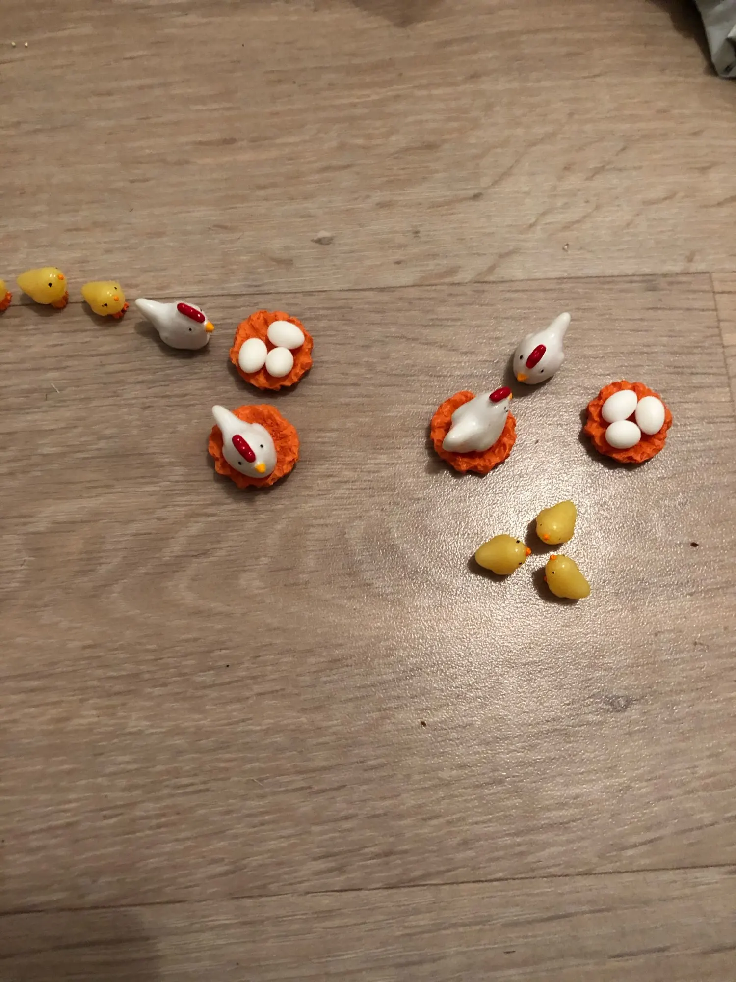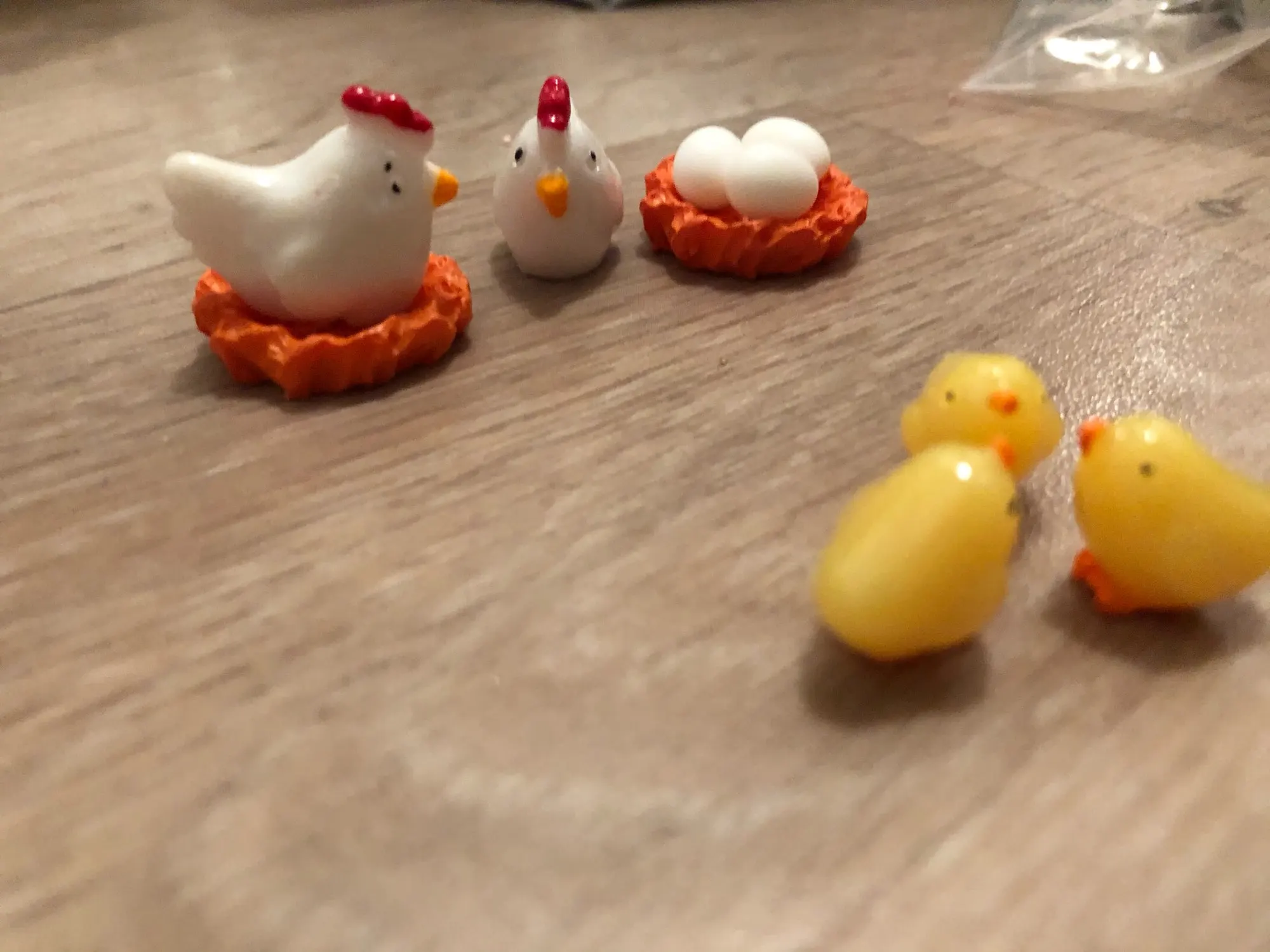 Reçu bien protégé , exactement ce que j’espérais , tout petit ce qui conviendra pour le jardin enchanté de Pâques . I. Peut mette les poules sur le nid les œufs ou on veut , j’adore et recommande ce produit de très bonne qualité . Ainsi que la boutique pour son sérieux et son professionnalisme , un grand merci au vendeur qui est très aimable , bonne communication. 5 étoiles