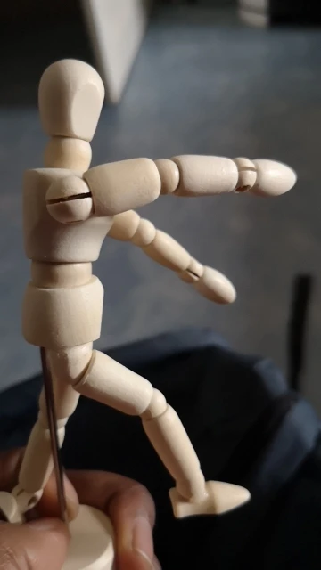 Artysta manekin jest przegubowy, dzięki czemu może naśladować pozy, działania i pozycje ludzkiego ciała.