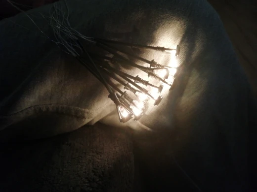 Każdy ma pojedynczy klosz, wypełniony drutami i żarówkami.