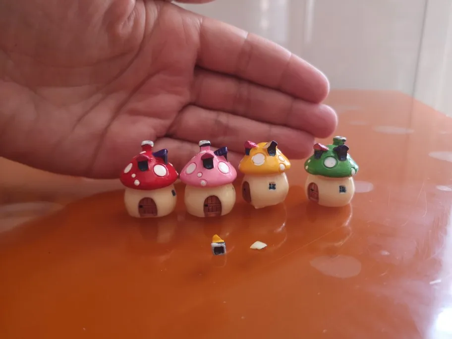 4 sztuk żywica Mini grzyb dom miniaturowe akcesoria ogrodowe kolorowe Micro krajobraz Fairy Garden miniatury ozdoby rzemiosło