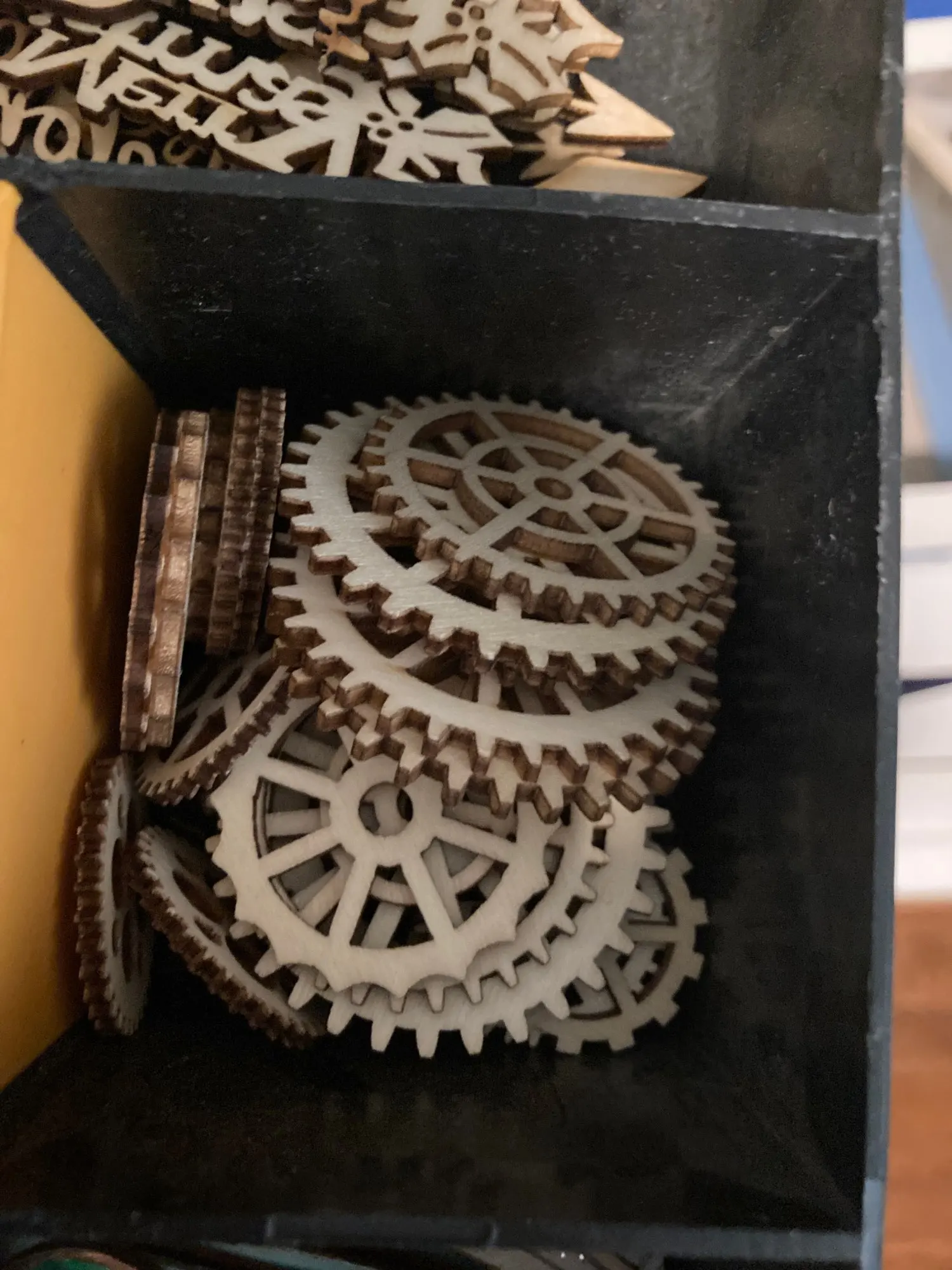 Laserowo wycinane kształty forniru z prawdziwego drewna.