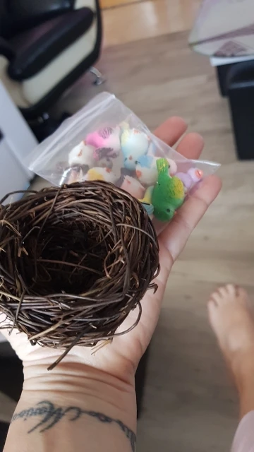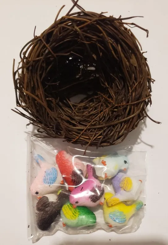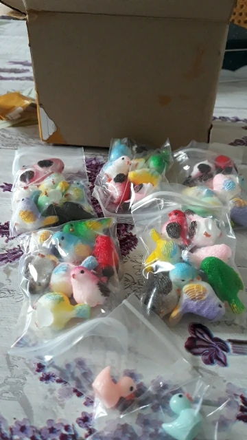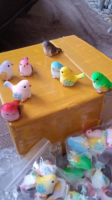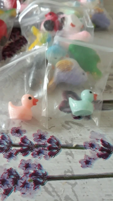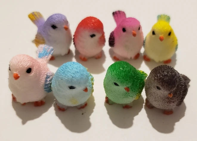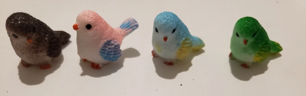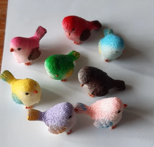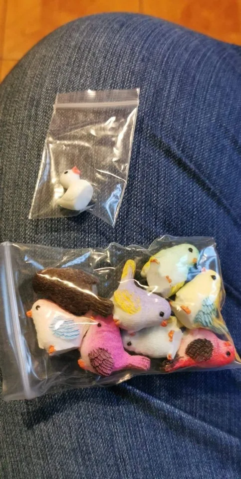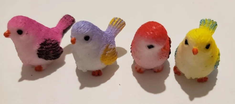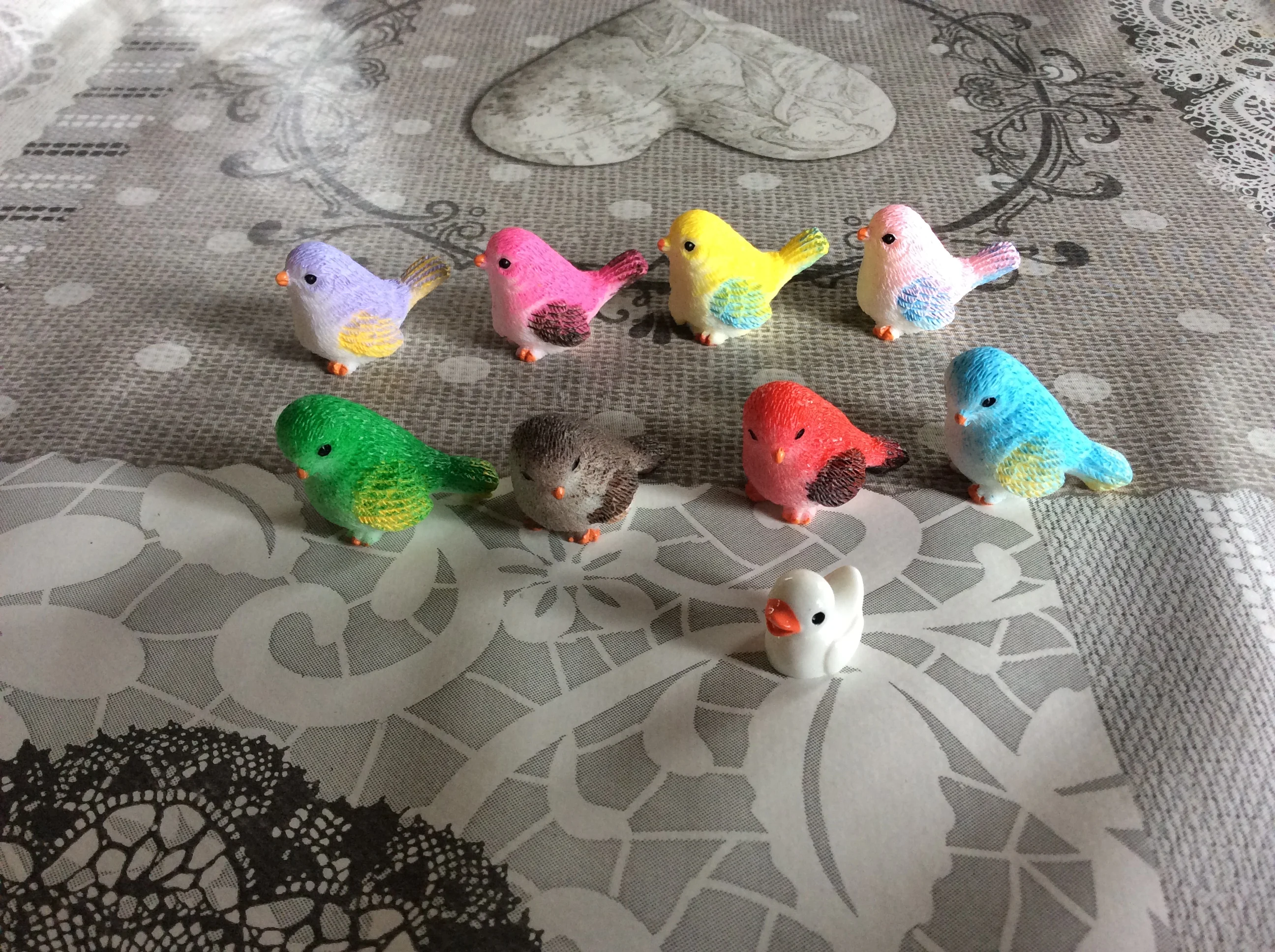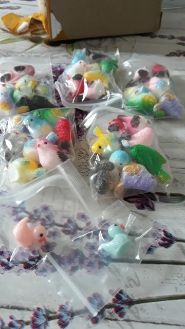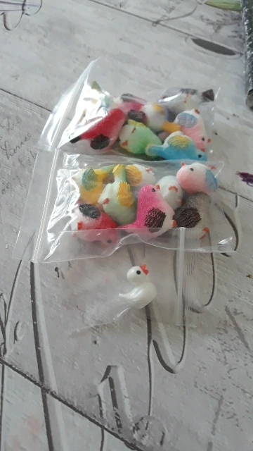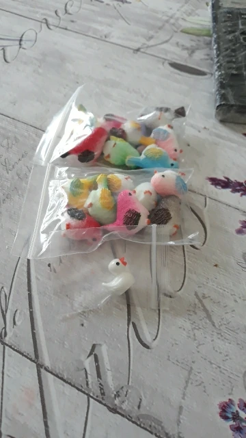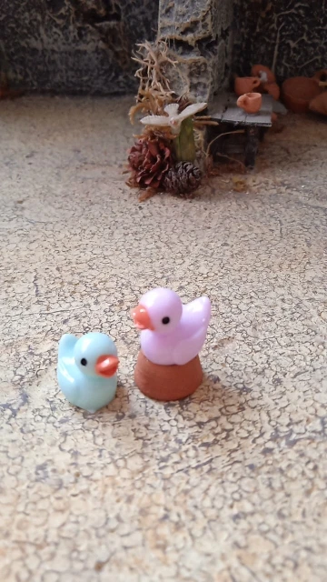 Schattige kleine vogels. Ongeveer 2 centimeter groot, prachtig afgewerkt. Met een kleine eend als gift, bedankt!