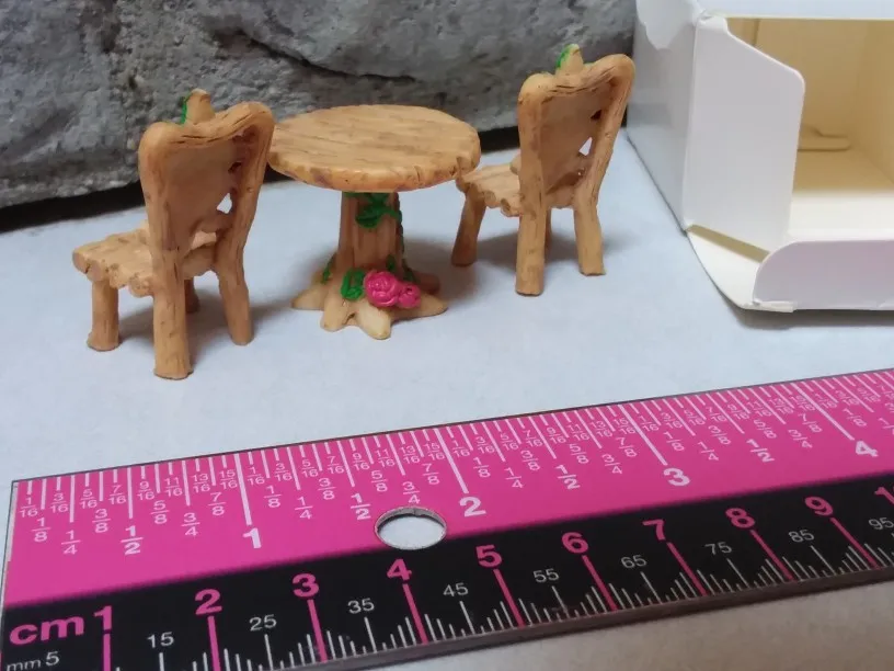 3 sztuk mikroornament krajobraz stół i krzesła rzemiosło żywiczne bajki miniaturowe ogrodowe Terrarium figurka DIY dekoracja wodoodporna zestaw