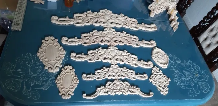 Prostokąt rzeźba z naturalnego drewna aplikacje na szafka niepomalowane drewniane listwy naklejka Vintage Home Decor dekoracyjne