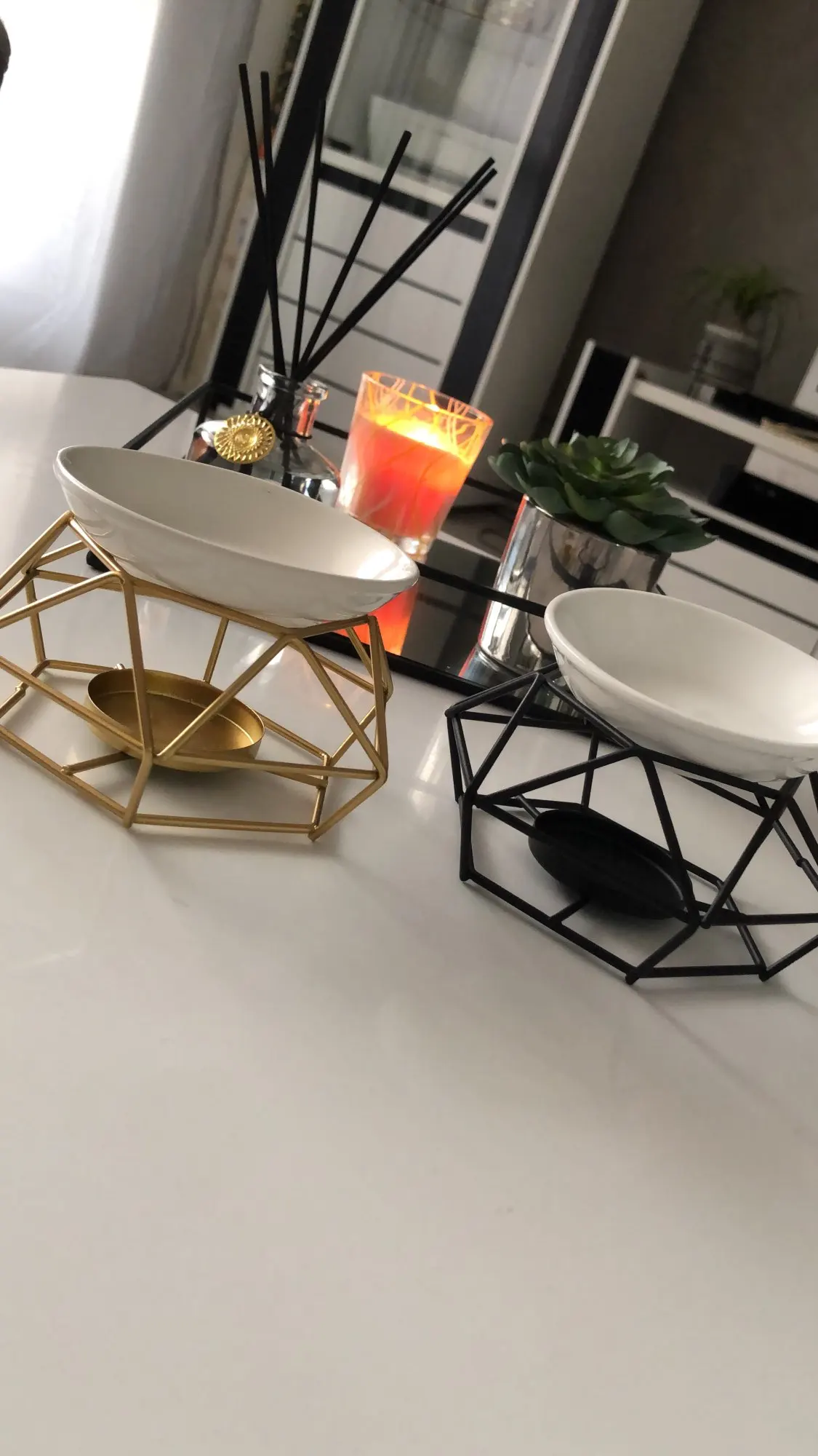 [Świecznik na olejku aromaterapeutycznego]: złota żelazna rama + biała taca to wizualnie oszałamiający nowoczesny geometryczny świecznik. Za pomocą świec lub olejków eterycznych może oświetlić do każdego pomieszczenia i wypełnić pomieszczenie kadzidłem [Szerokie zastosowanie]: ten rodzaj pionowego świecznika jest bardzo odpowiedni do dodawania poczucia dekoracji do dekoracji do każdego pomieszczenia. Idealny do codziennego użytku, wesela, imprezy, aromaterapia, spa, reiki, medytacja, urodziny, uroczystości uroczystości, wysokiej klasy kolacje i kolacje przy świecach, świąteczne kolacje i chrzciny ślubne w stylu vintage. [Materiał wysokiej jakości]: sztuka żelaza jest antykorozyjna, łatwa do czyszczenia i może być używana przez długi czas. Świetny wystrój domu i mała świeca posiadacze. [Doskonała dekoracja domu]: poprowadź trend i przyciągnij gości modnymi wzorami. Zdecydowanie używają tych geometrycznych kształtów herbaty oprawy na lampy w domu i świetnie wyglądają na kawę lub stoły do jadalni. [Prezenty Premium]: ta grupa stylowych pudełek do przechowywania jest kompaktowo zapakowana, bardzo nadaje się do parapetówek lub prezentów ślubnych. Świetne dekoracje na urodziny, kolacje przy świecach, jadalnie, salony, salony, gabinety i bary.