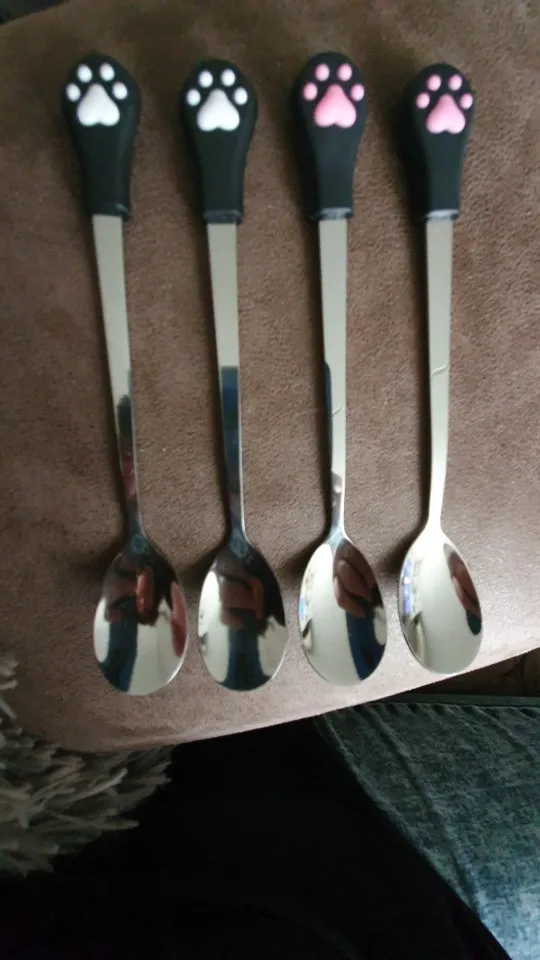 1 sztuk śliczne ze stali nierdzewnej kot pazur łyżeczki do kawy owoce łyżeczka do deserów cukierki łyżeczka do herbaty kot pazur kształt pić zastawa stołowa