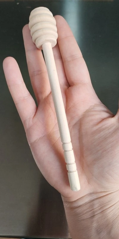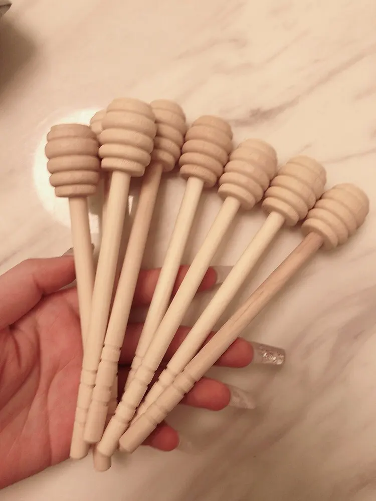 • Rowki na tych drewnianych dipperach pomagają w łatwym zbieraniu i dozowaniu miodu ze słoika.