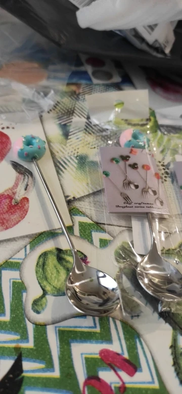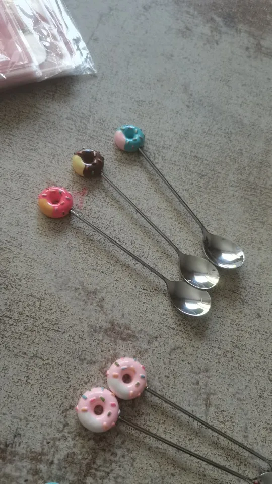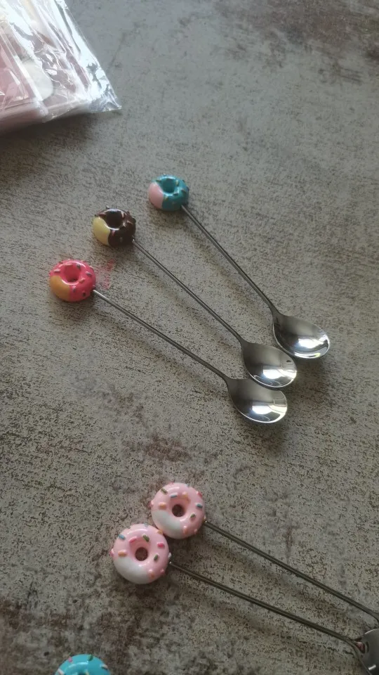 1PC ze stali nierdzewnej pączek łyżka widelec ciasto kawy deser herbata lody łyżki do mieszania cukierki Cute Cartoon łyżeczka naczynia